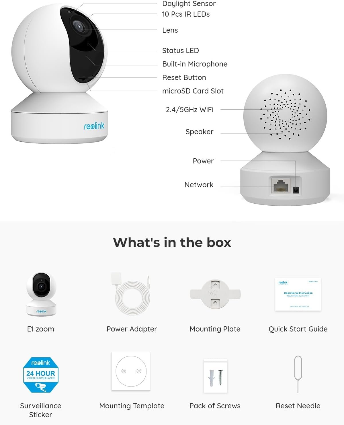 EASY SETUP & FLEXIBLE STORAGE: Power on the E1 Zoom and set it up in minutes with an Ethernet cable or WiFi connection. It supports up to 256GB microSD card storage, high capacity NVR and FTP server. Store your data locally, no monthly fee required.