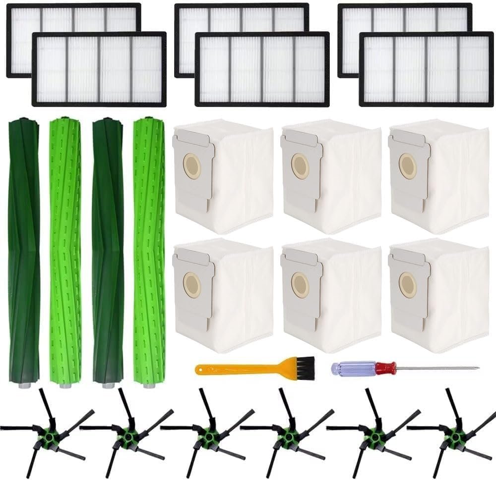 Replacement Parts for iRobot Roomba s9, (9150) s9+ s9 plus (9550) S-Series Robot Vacuum Cleaner 24 Pack, (2 Pair of Multi-Surface Rubber Brushes, 6 Filters, 6 Side Brushes, 6 Dust Bags and 2 Tools)
