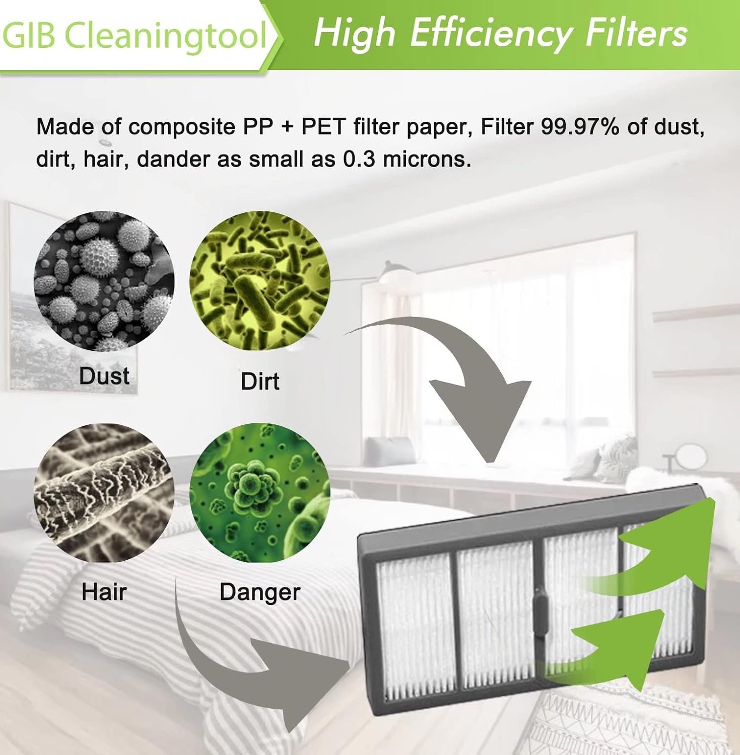 ❤Package Includes: 2 Pair of Multi-Surface Rubber Brushes, 6 Filters, 6 Side Brushes, 6 Dust Bags and 2 Tools