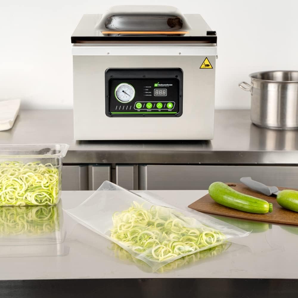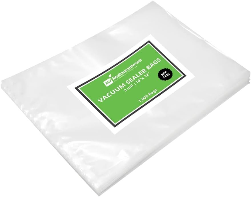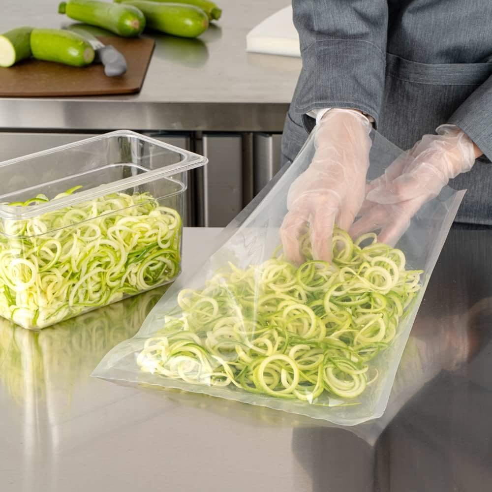 Securely seal in fresh ingredients using our Fresh Hero Clear Plastic Vacuum Packaging Bags. Pair these meal seal bags with our compatible Fresh Hero vacuum packaging machine to lock in maximum freshness (SKU: RWM0156S or RWM0157). With a 4 mil thickness, these food sealer bags protect food from damage while in storage. Crafted from polyethylene and nylon, these food storage bags are BPA-free to cleanly hold prepped ingredients without unwanted substances. These food saver vacuum bags can be boiled, making them ideal for sous vide cooking. To easily store and reheat food, these food vacuum bags are microwavable and freezable. These vacuum storage bags measure 16 inches long by 12 inches wide. Sold in a 100 count box. Fresh Hero vacuum packaging machines are available and sold separately.