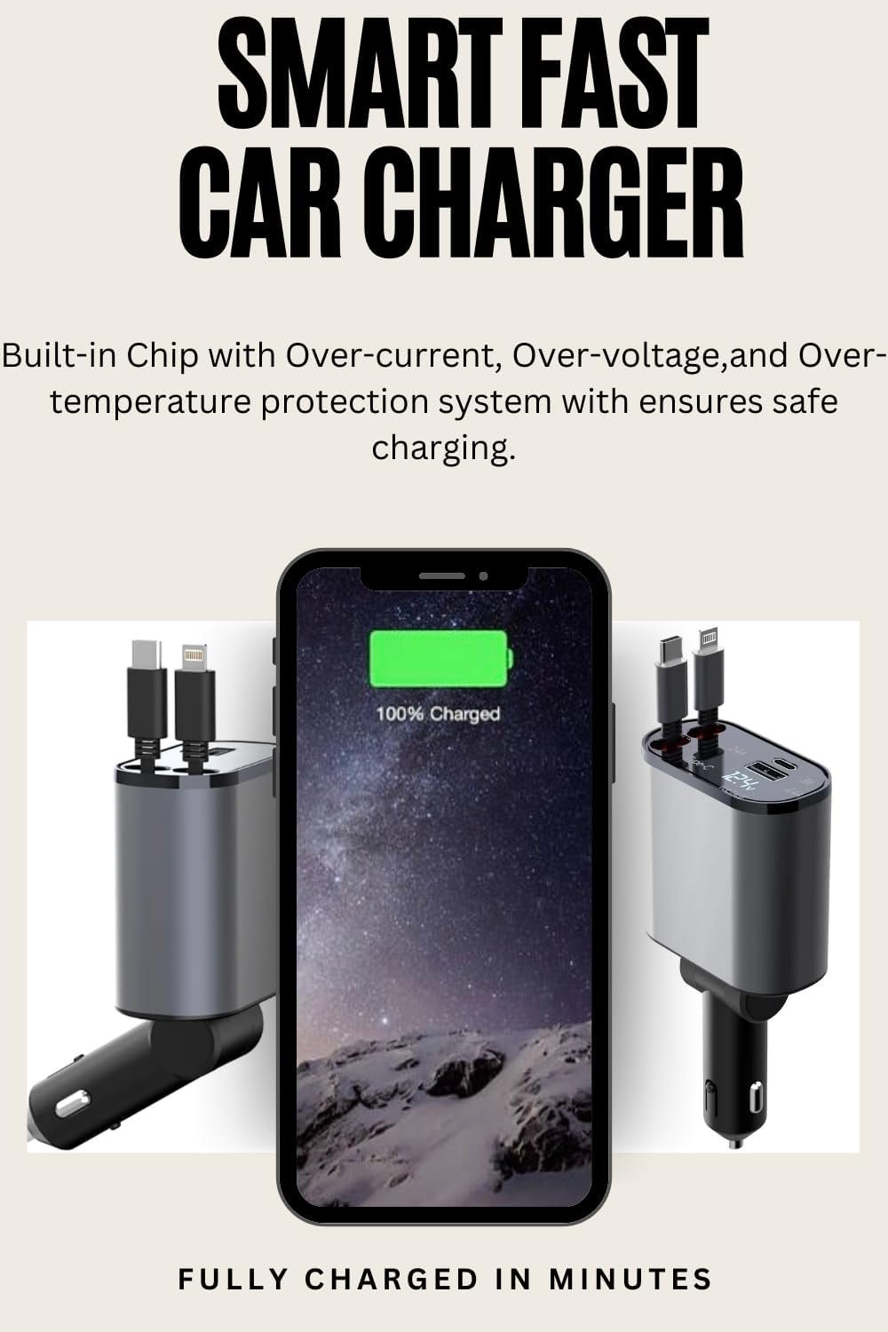 Retractable Fast Car Charger multi car charger adapter 4 in one car charger