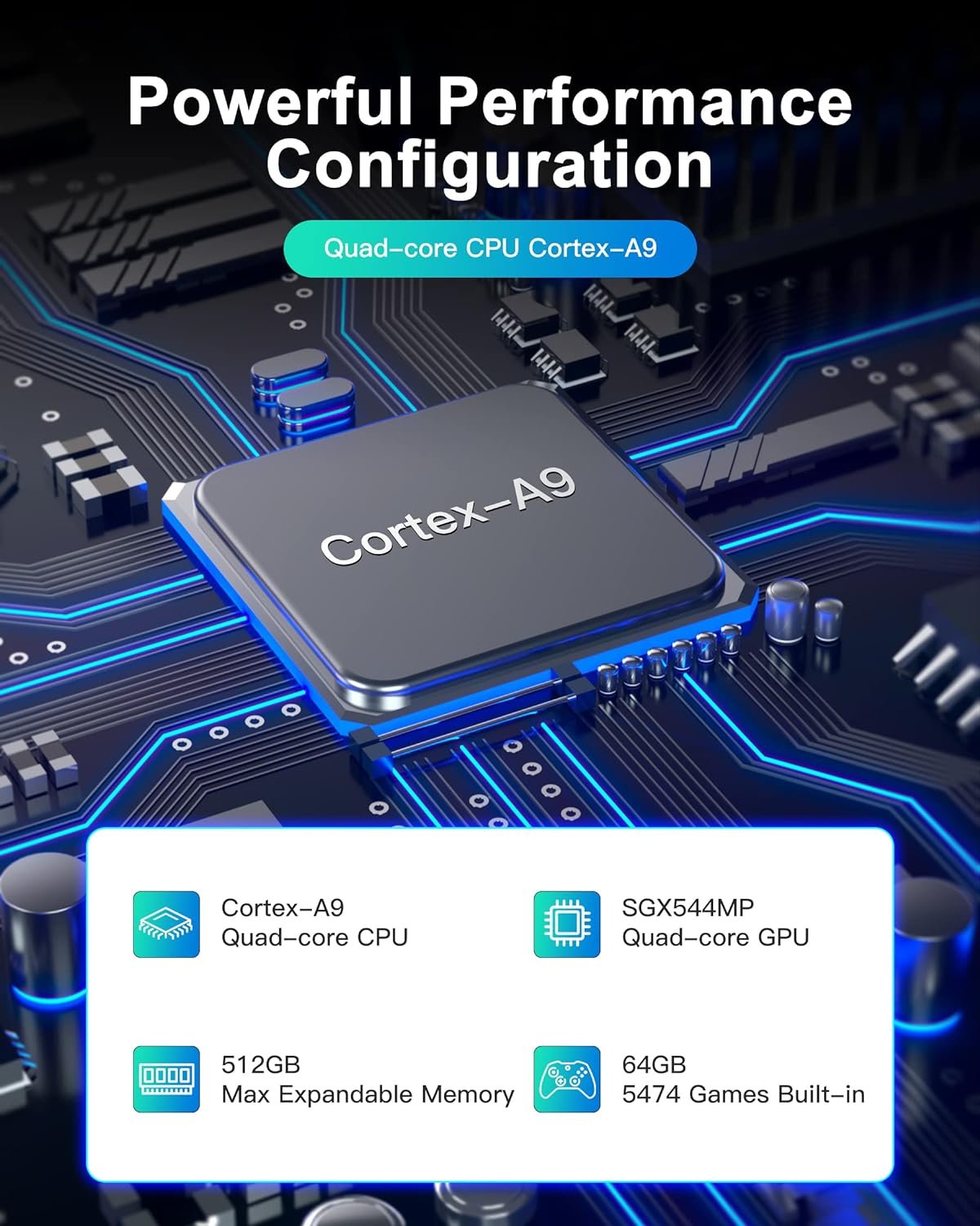 Featuring a chip upgrade with quad-core ARM Cortex-A9 and Quad-core PowerVR SGX544MP GPU, the RG35XX offers low power consumption and high performance, supported by DDR3 256MB RAM for faster system response time.