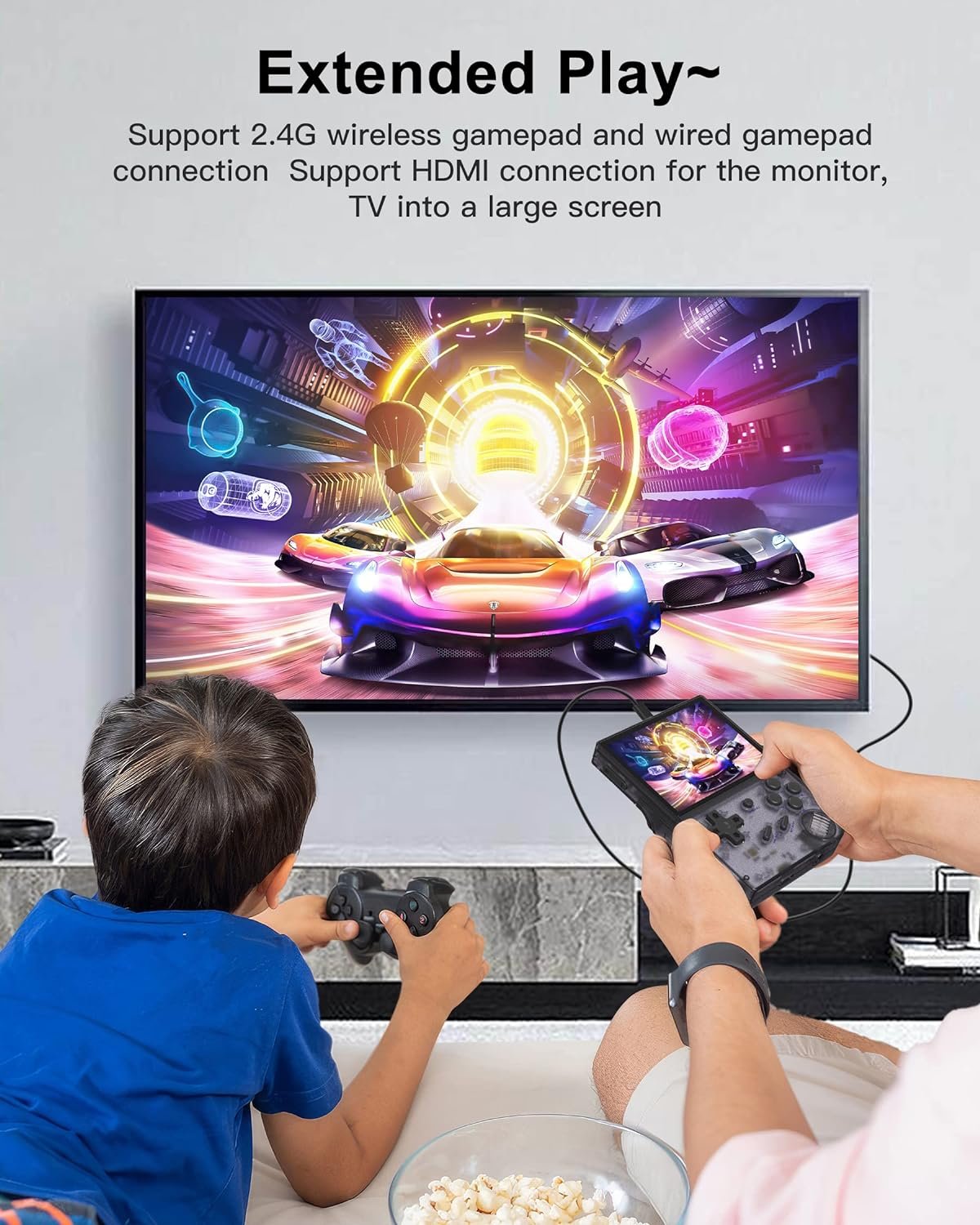 The RG35XX supports 2.4G wireless gamepad and wired gamepad connection, with HDMI and TV output function, allowing for multiplayer gaming and an immersive gaming experience on a larger screen.