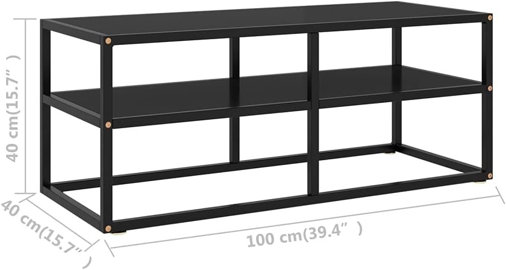 This modern glass TV cabinet is designed to enhance your living space with its sleek lines and practical features. Constructed from tempered glass and powdercoated steel, it boasts both durability and stability. The tempered glass is 0.2″ thick, providing added strength. The sturdy steel frame ensures a robust structure, while the powder coating adds extra protection and a polished look..The TV cabinet features a spacious shelf under the tabletop, offering ample storage for all your media essentials. Keep your DVDs, Blurays, video game consoles, streaming devices, and more organized and within reach..With its sleek design and versatile storage options, this glass TV cabinet is the perfect addition to any modern living room or entertainment area. The assembly is required for this product. The maximum load capacity of the cabinet is 165.3 pounds, ensuring it can withstand the weight of your entertainment devices.