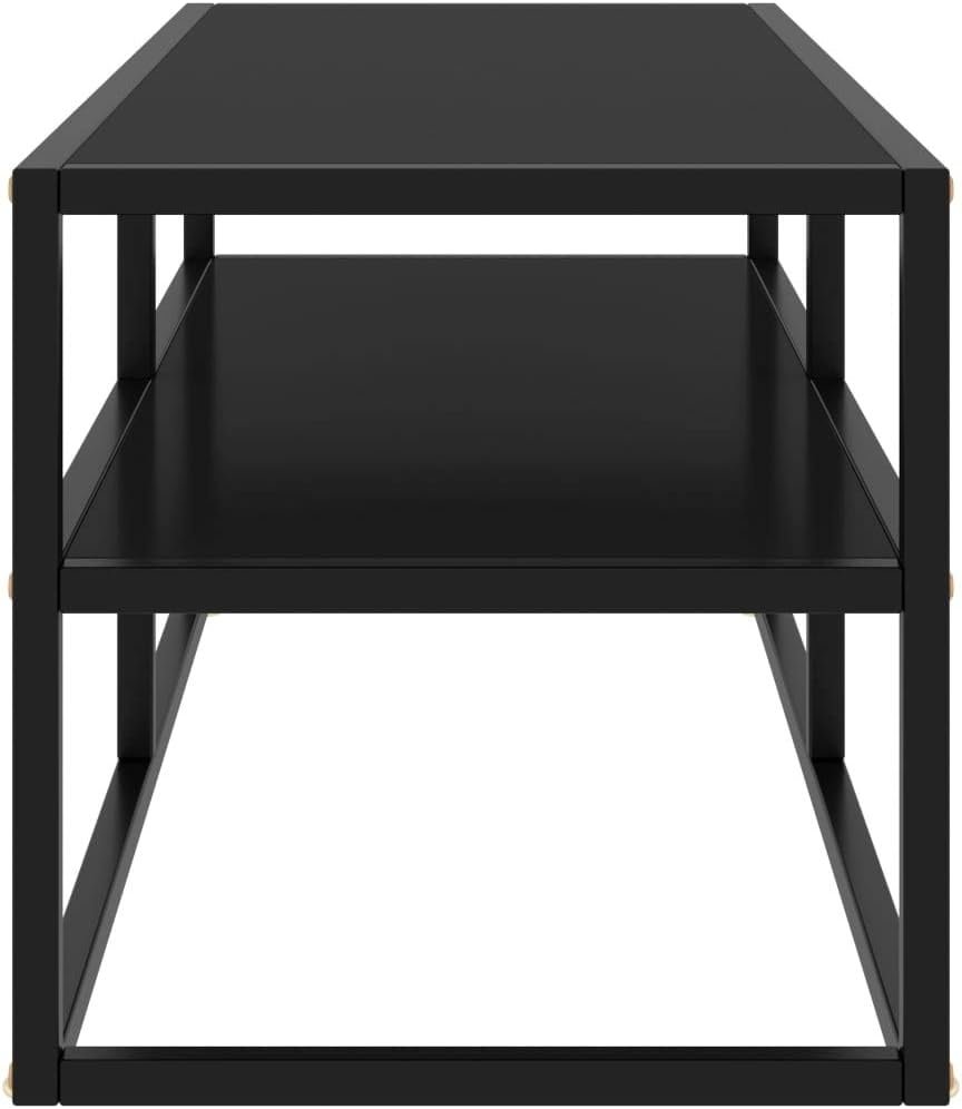 RINDIGOO TV Stand Black with Black Glass 47.2″x15.7″x15.7″,Modern Glass TV Cabinet with Ample Storage for Entertainment and Home Decor