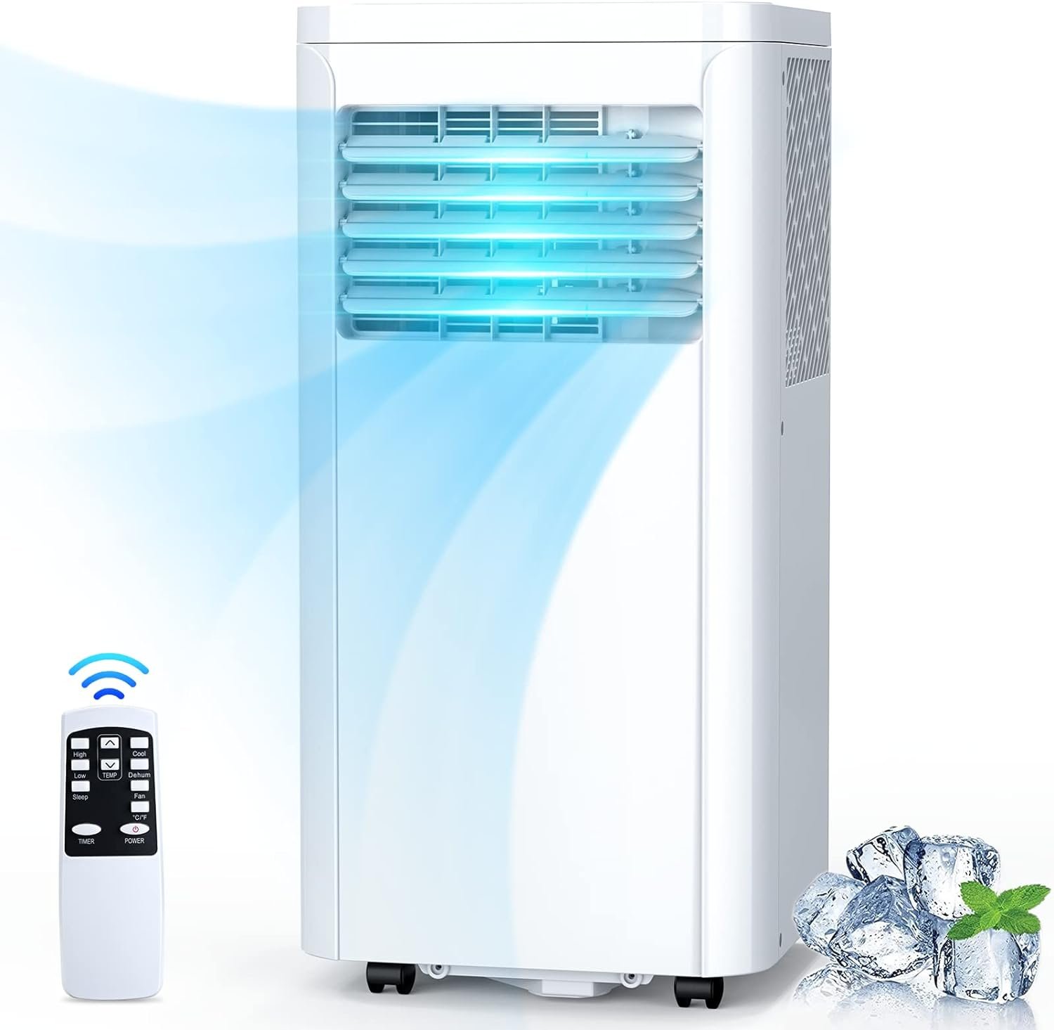 The Rintuf portable air conditioner comes with a user-friendly LED display and compact remote control. Set the mode, temperature, timer, wind speed, and ℃/℉ with ease.