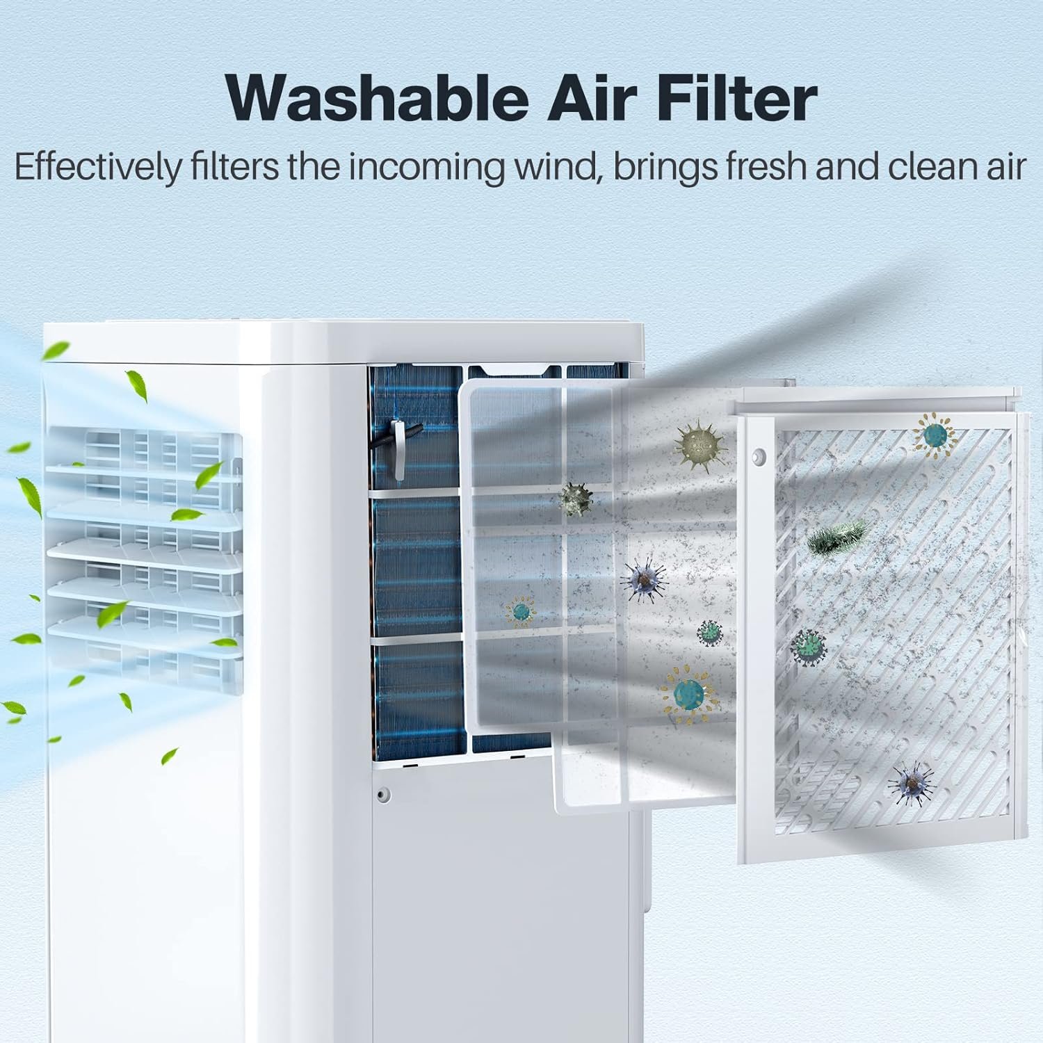 Preset the 24-hour on/off timer to turn on/off the portable ac unit according to your schedule. Keep the room cool and save energy at the same time.