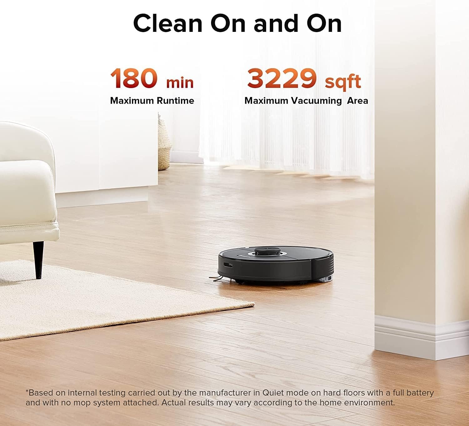 Long-Lasting Cleaning: The Q7 Max can run for up to 180 minutes on a single charge with a specially designed battery, or for a maximum vacuuming area of 3229 square sqft.