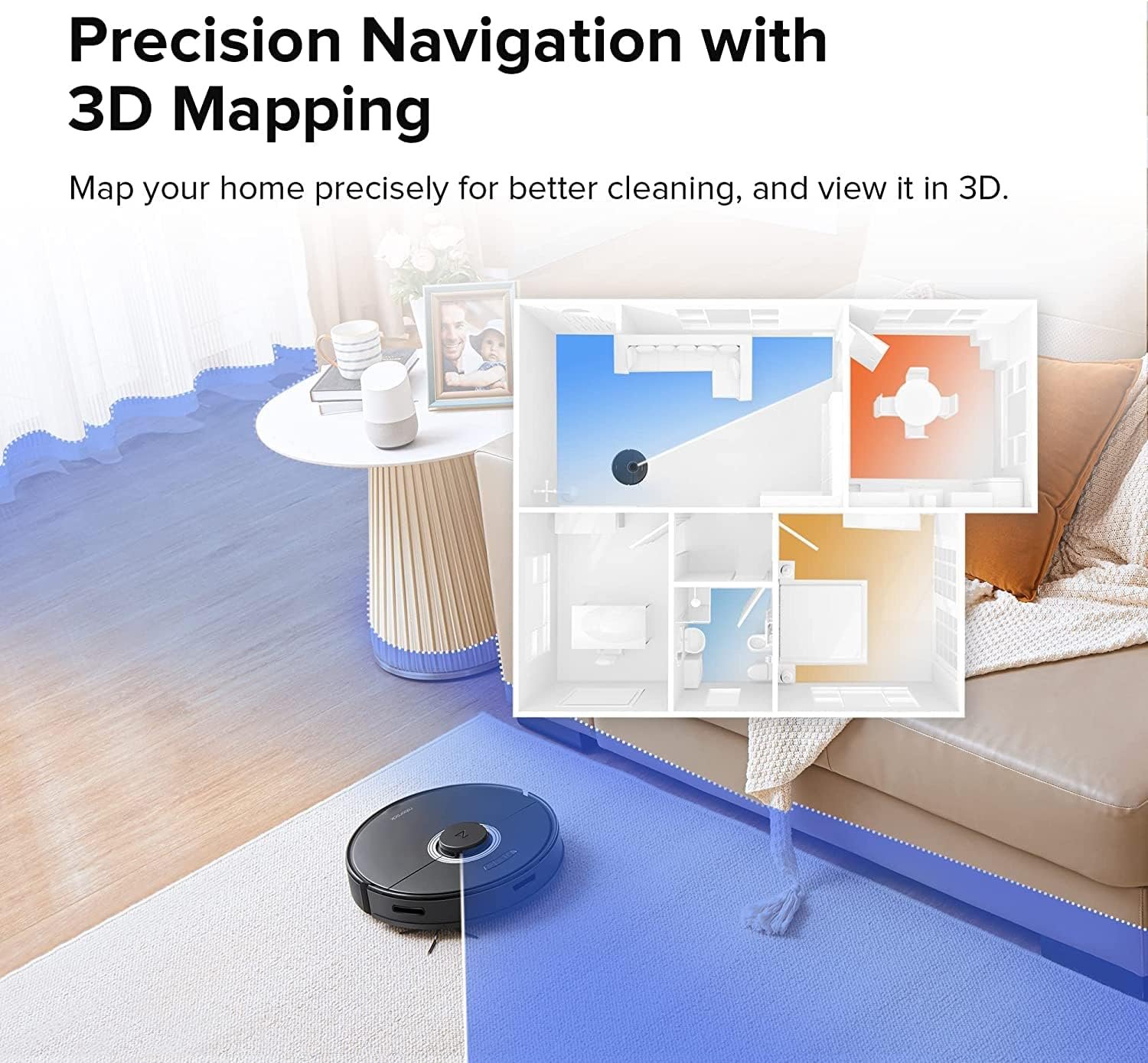 Clean Smarter with PreciSense LiDAR Navigation: LiDAR navigation, which is incredibly accurate, can now be viewed in 3D, building precise maps of your home. It also monitors cleaning routes efficiently. You can virtually recreate your home by adding furnishings and flooring materials.