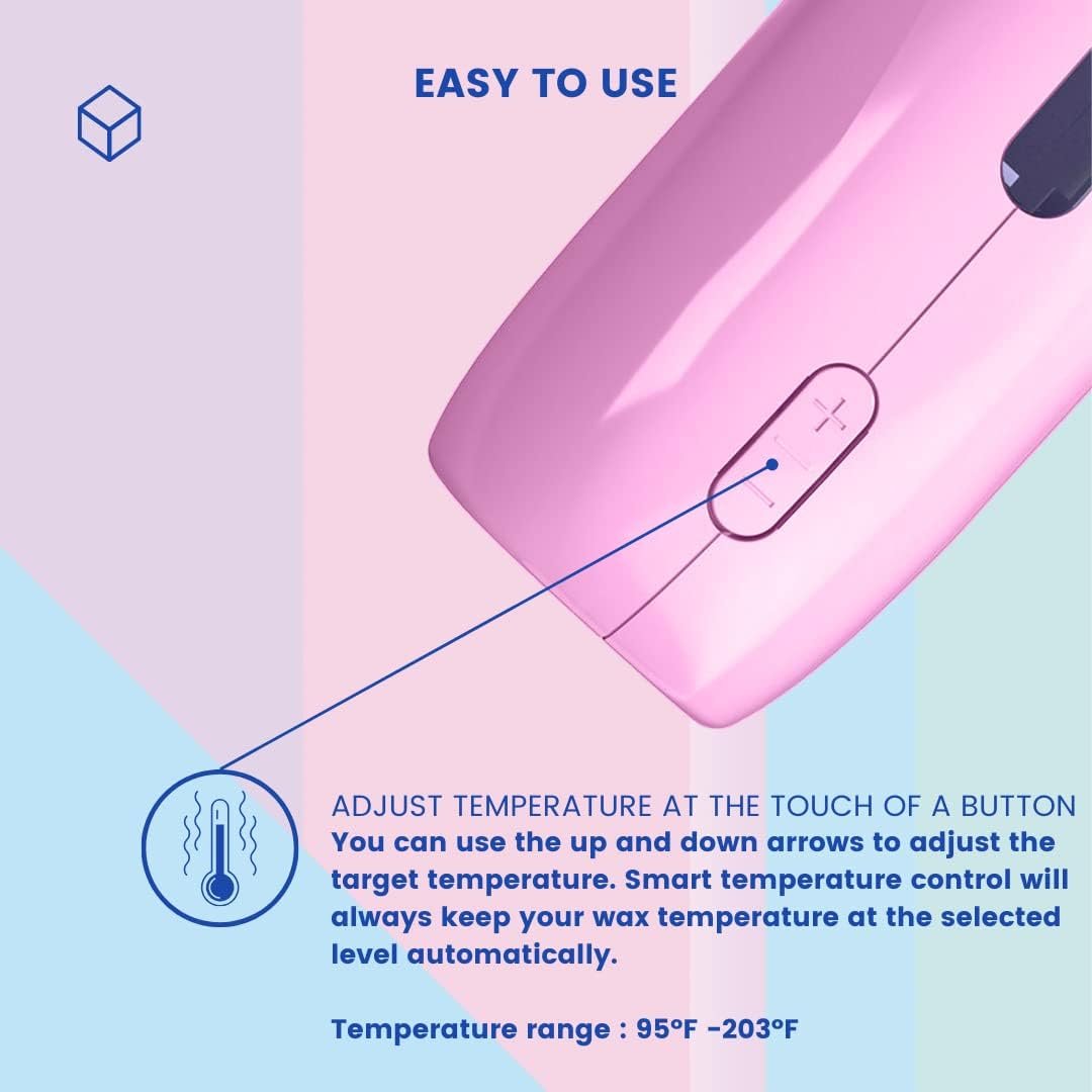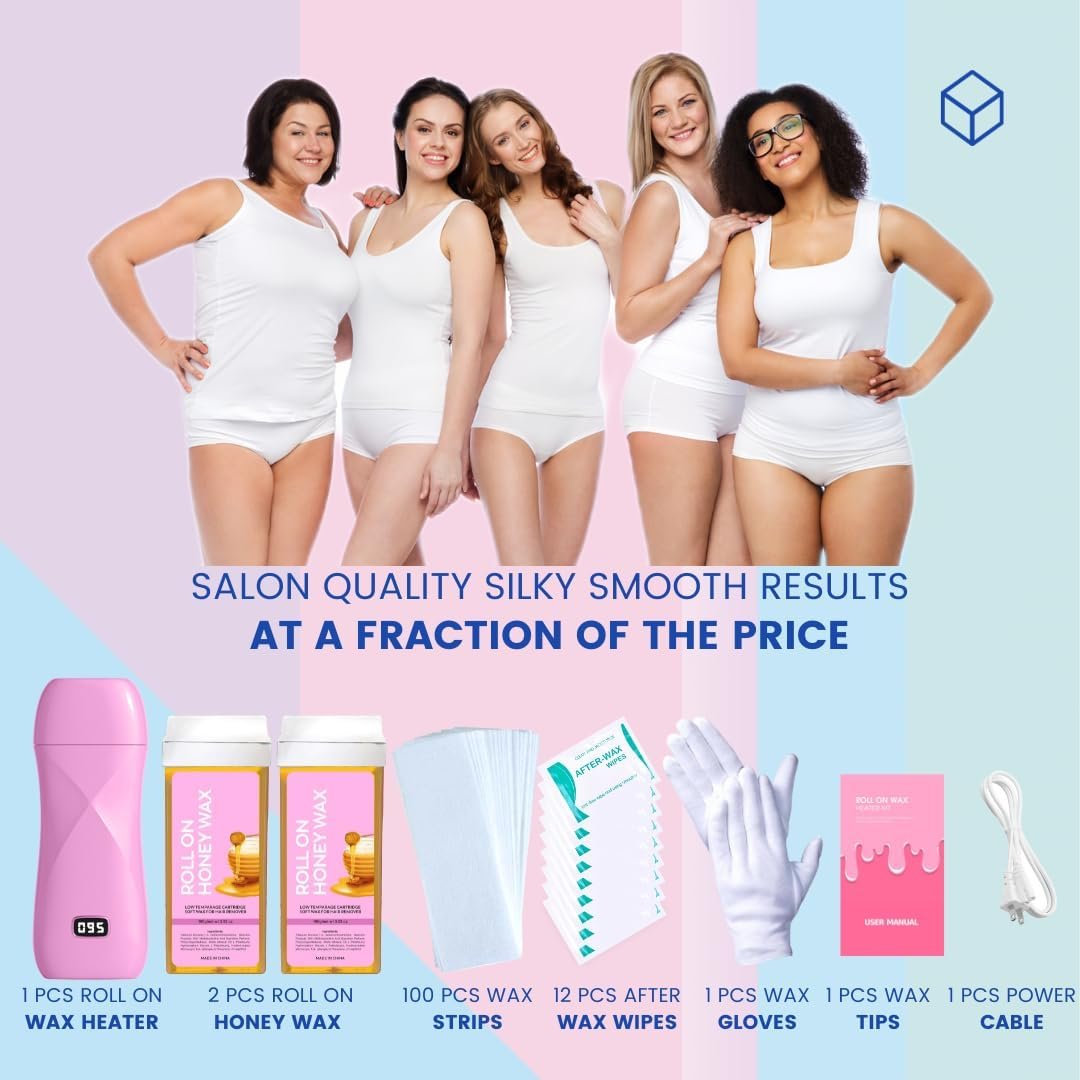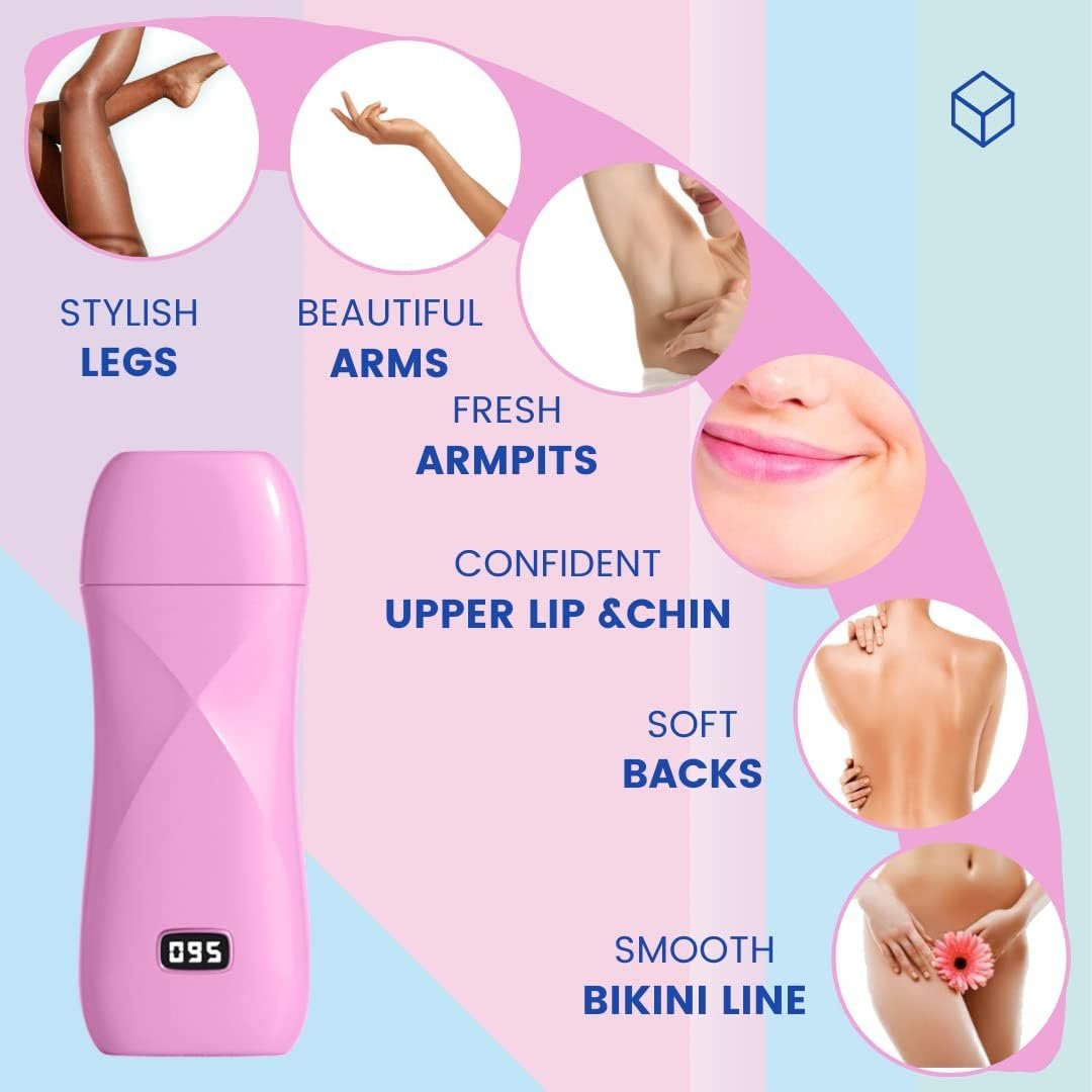 Safe and Secure Use: This roll-on wax warmer allows you to control the temperature of the wax with ease, through the LED digital display and thermostatic design. Excellent Ingredients: The leg waxing kit for women comes with 2 special wax rolls featuring carefully selected ingredients designed to help you remove every single excess hair on your body.