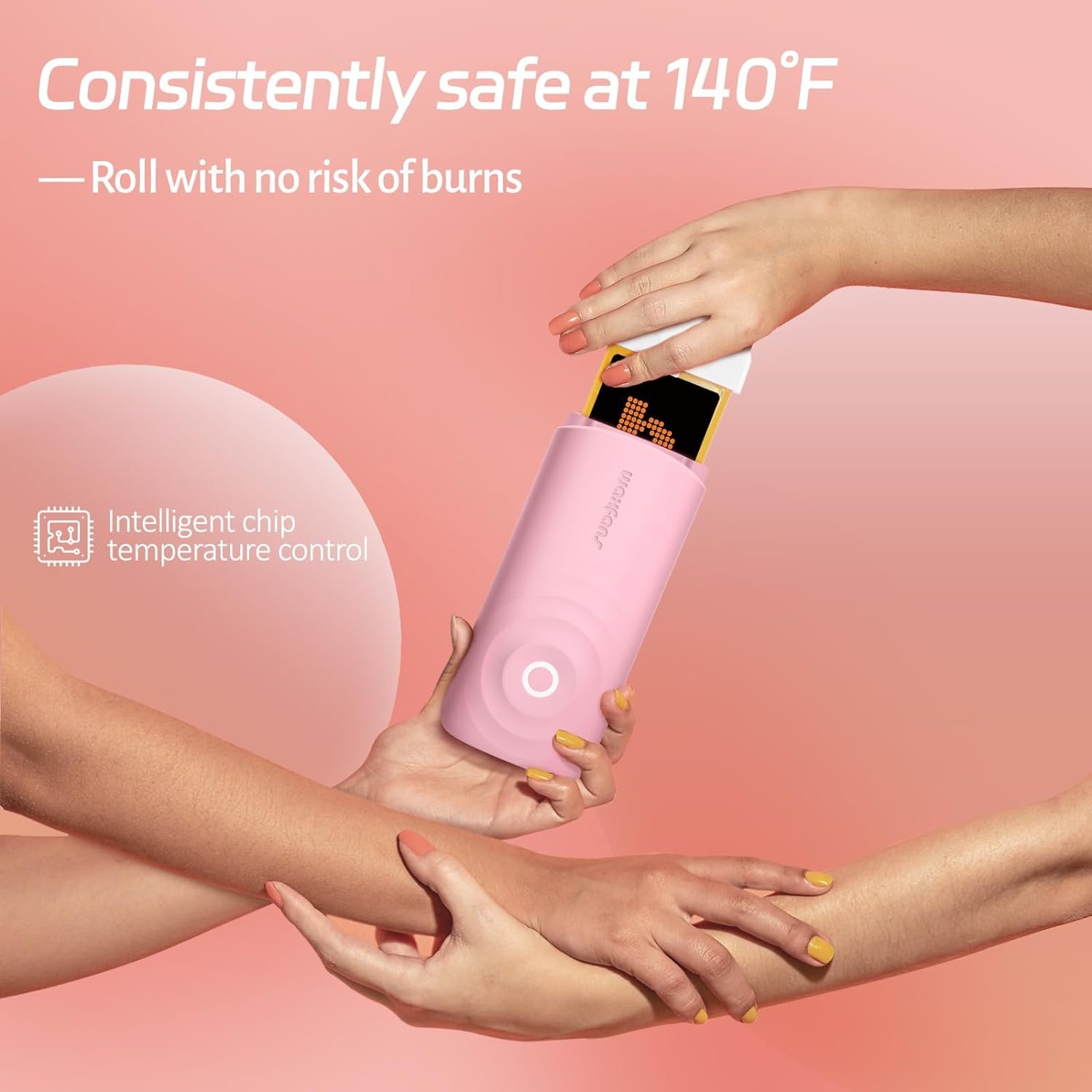 Intelligent chip controls the temperature, so the body doesn’t feel hot in your hand.Hair removal at 140°F with a gentle application that won’t burn your skin.So every hair removal you do is safe and comfortable.