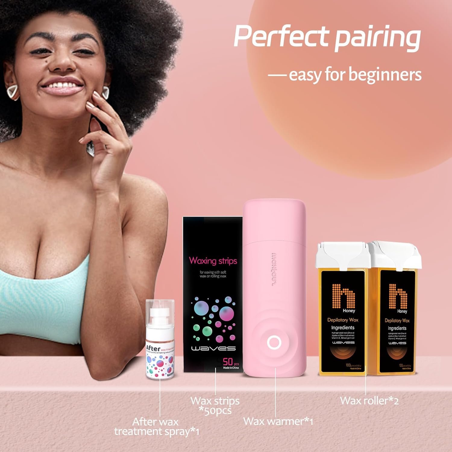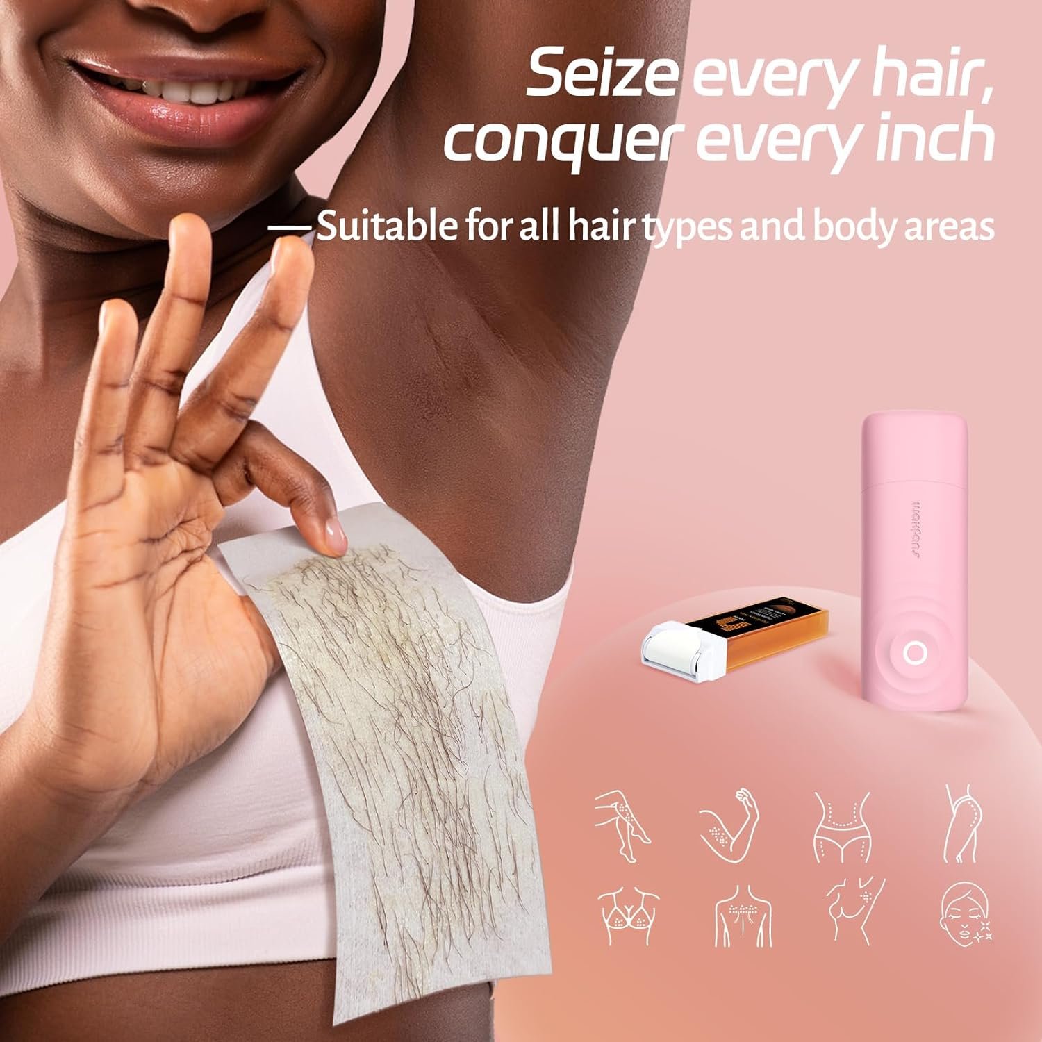 🏠 𝗔𝗟𝗟-𝗜𝗡-𝗢𝗡𝗘 𝗪𝗔𝗫𝗜𝗡𝗚 𝗦𝗢𝗟𝗨𝗧𝗜𝗢𝗡 𝗙𝗢𝗥 𝗛𝗢𝗠𝗘 𝗨𝗦𝗘:Our complete is a perfect home waxing kit for women,with automatic and precise temperature control, it prevents skin from being burned and is suitable for sensitive skin. 1 Smart wax warmer , 2 Rose wax roller refill, 1 After wax treatment spray,50 Non Woven Waxing Strips. It can quickly and effectively remove hair in large quantities, making it an ideal choice for newcomers to hair removal, especially for large body areas.