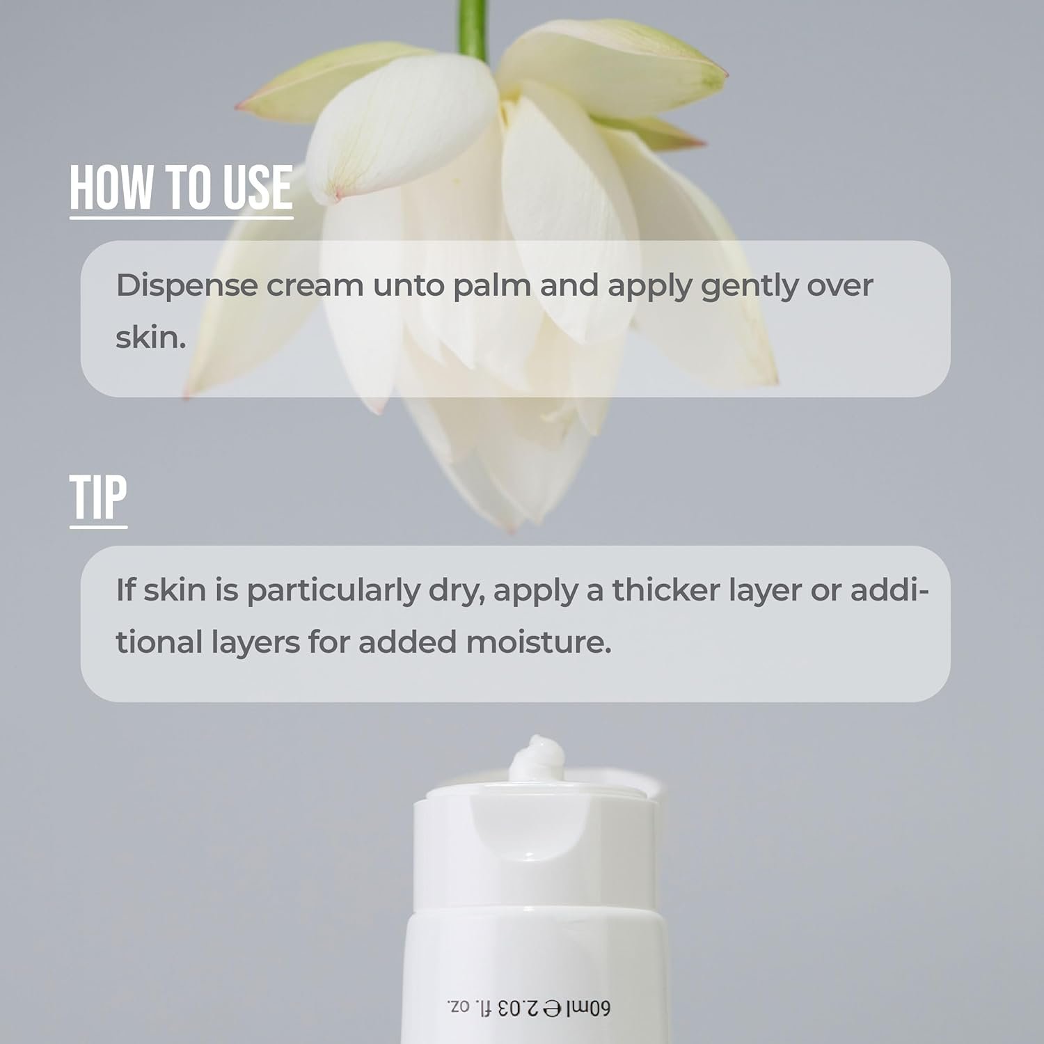 [Lotus Water Cream] 100% Vegan Moisturizer for sensitive, dry or oily skin. Include lotus water extract that makes up 75% of content and resembling the Lotus flower’s remarkable ability to self-purify, Lotus Water Extract absorbs damaging toxins out of your skin for a clearer and cleaner complexion. Furthermore, Kaempferol (a potent antioxidant) helps restore balance and refines signs of aging skin.