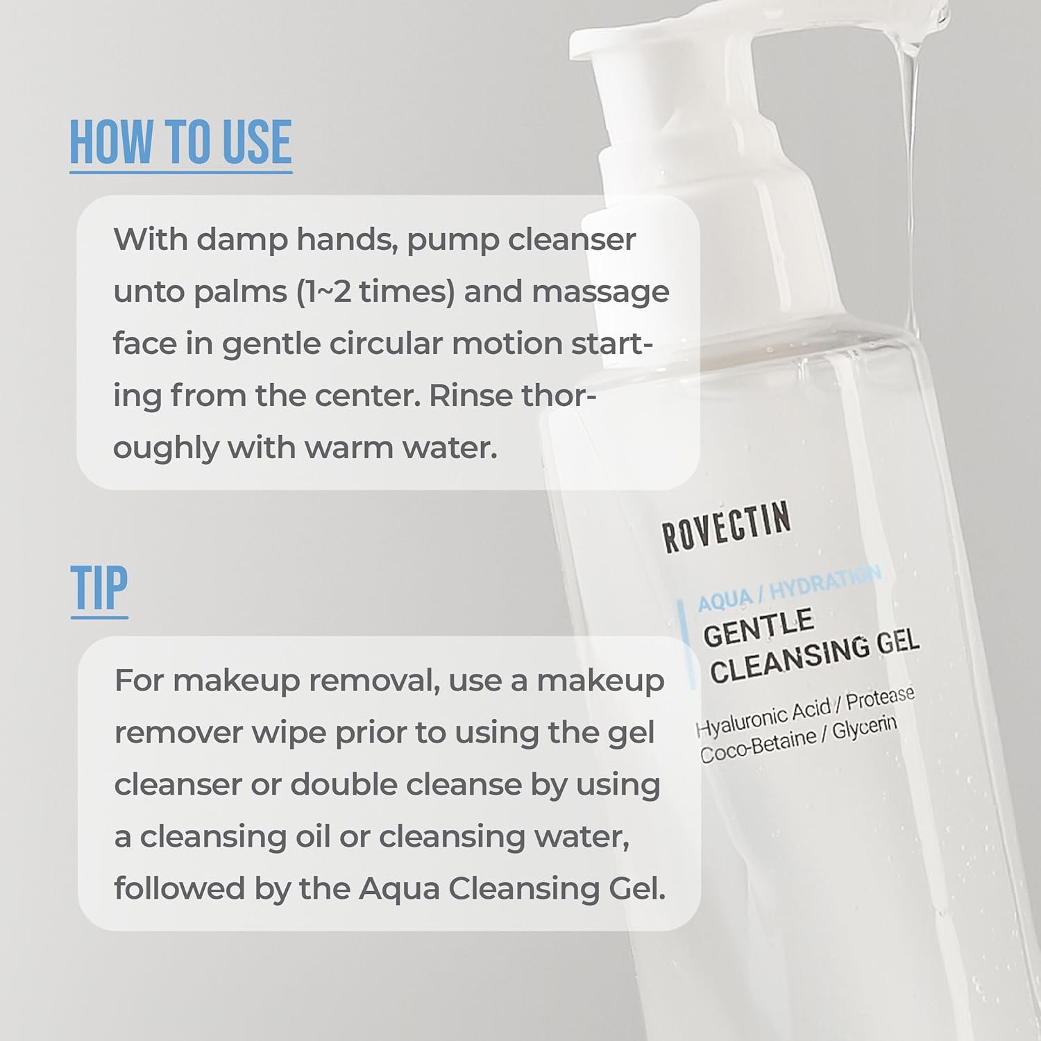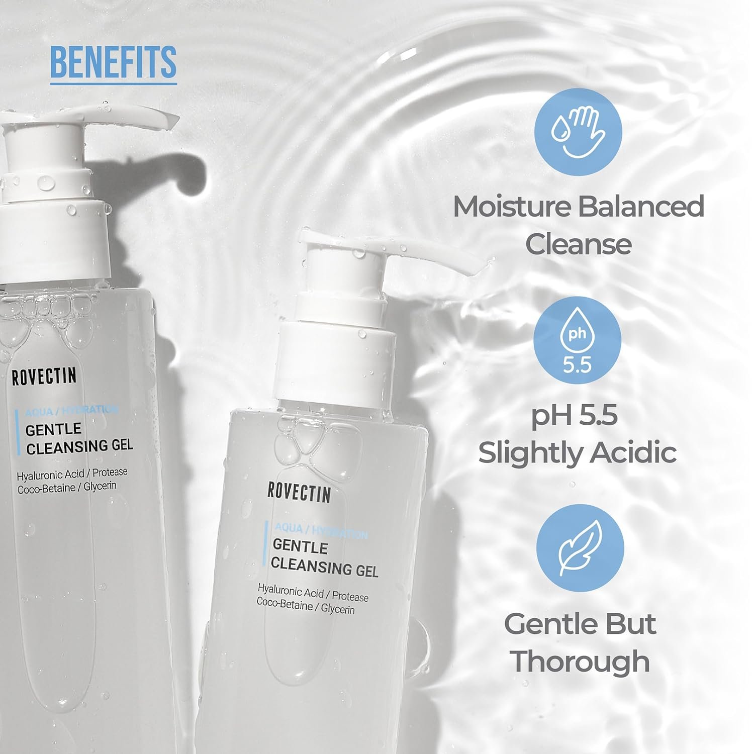 ROVECTIN Calming Lotus Water Cream (2.1 fl.oz) Moisturizer + Aqua Cleansing Gel (5.9 fl. oz) pH Balanced Facial Wash | Vegan Korean Skincare Bundle [2 Pack]
