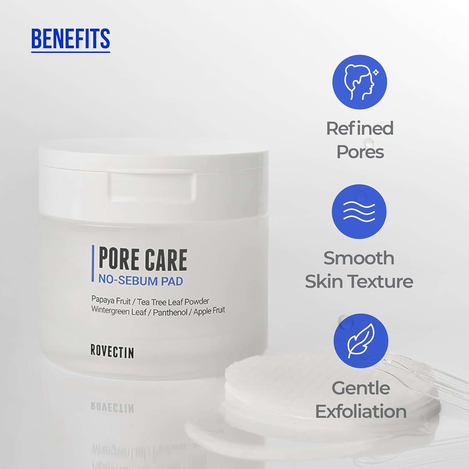 ROVECTIN Pore Care No-Sebum Pad for Sebum Clearing and Pore Clearing with Green Fruit Complex, Gentle Exfoliating Pads – 60 Pads