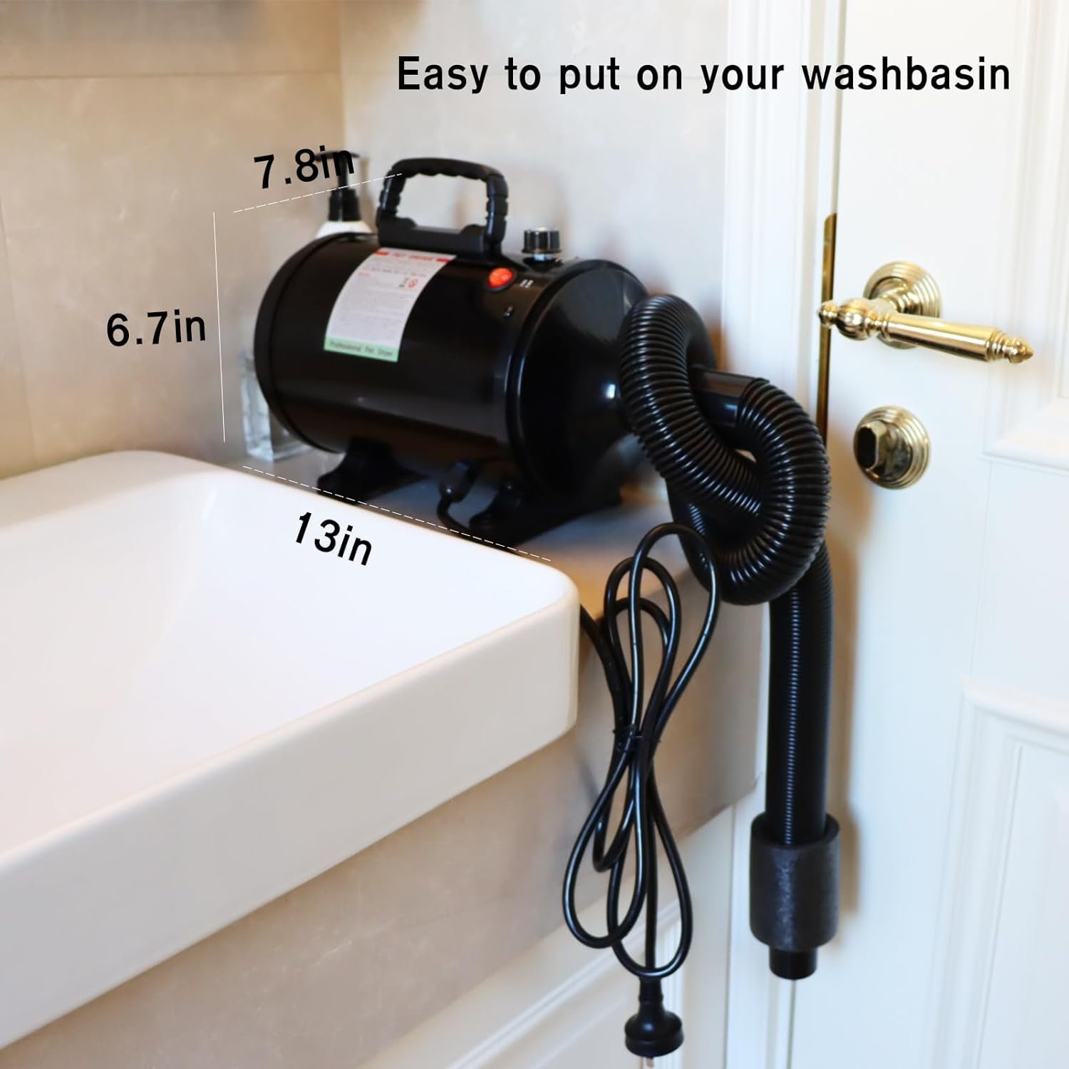 Fast blow-drying & blow dust off and loose hair in a short time: 2800W adjustable / Voltage 110/120V. Powerful, dry your pet’s fur fastly than using towel alone or your hair dryer after bath and remove the little tangles in their undercoats, help to blow off the dust and muddy especillay after they back from your yard everyday. Quickly and efficiently dries pet’s coat, keep it soft, fluffy and shiny. You can groomed your pet entirely at home and save time if the the groomer is far away.