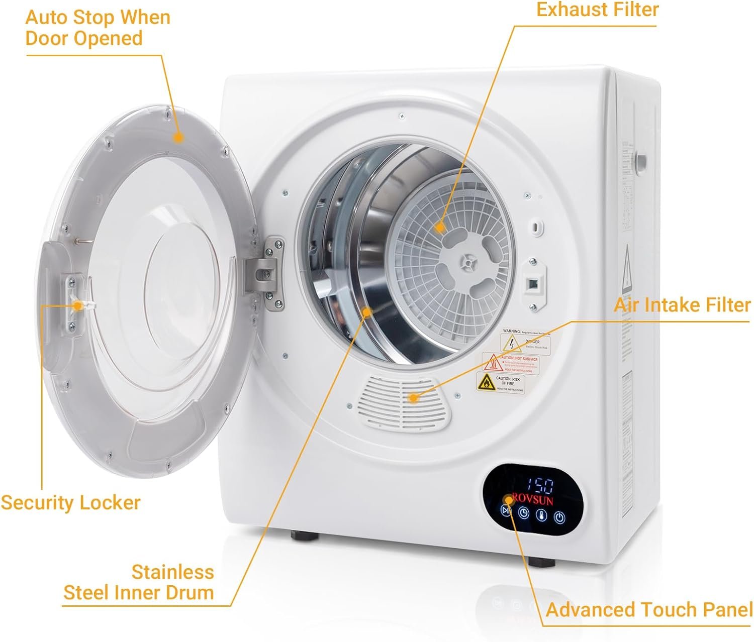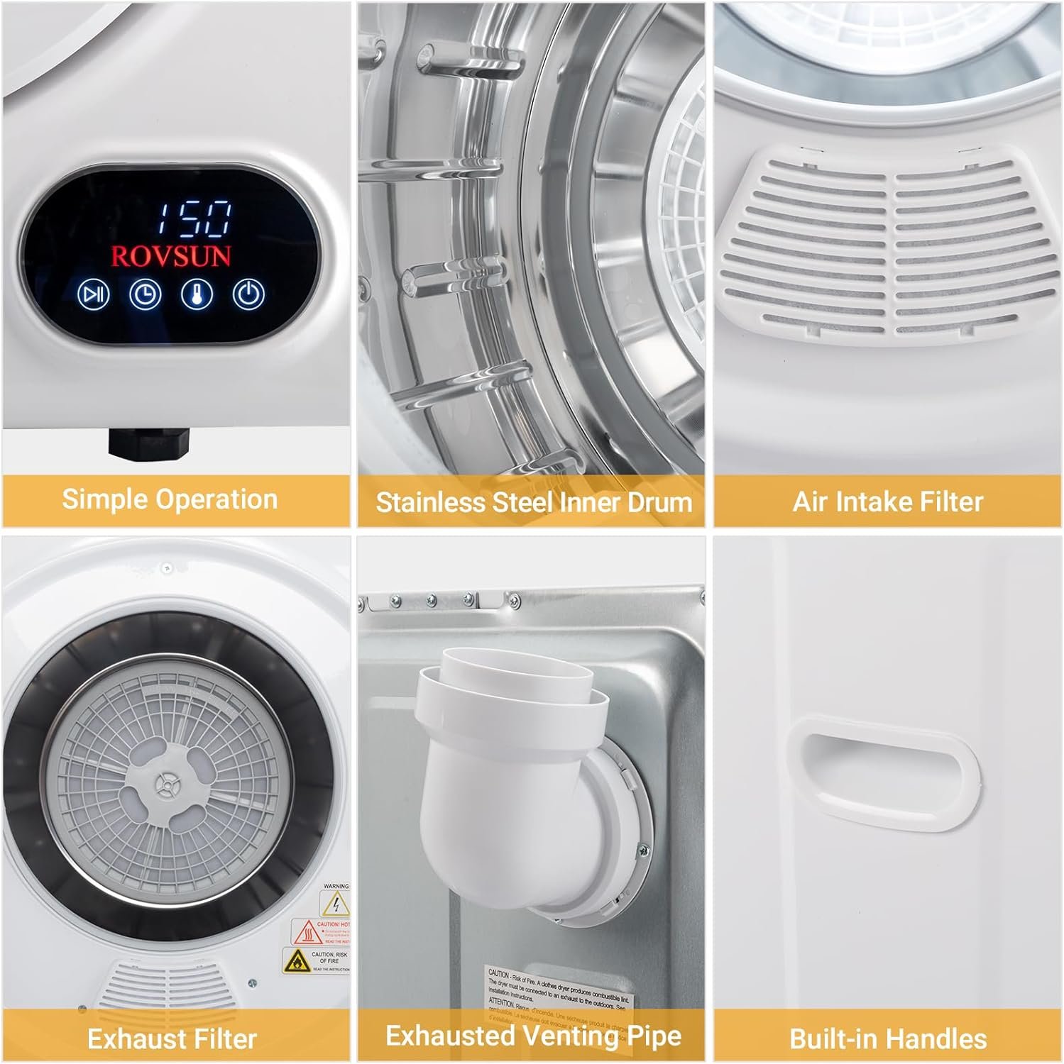 【Powerful Drying】This electric dryer is featured with 850W power and large capacity, maximum10 lbs large capacity(10 pounds is the weight of wet clothes) & highest temperature can reach at 140°F for ensuring your clothes to be dried quickly; no worry for clothes drying even though it lasts rainy (NOTE: for quick drying, no more than 5.5 pounds of clothes at a time)