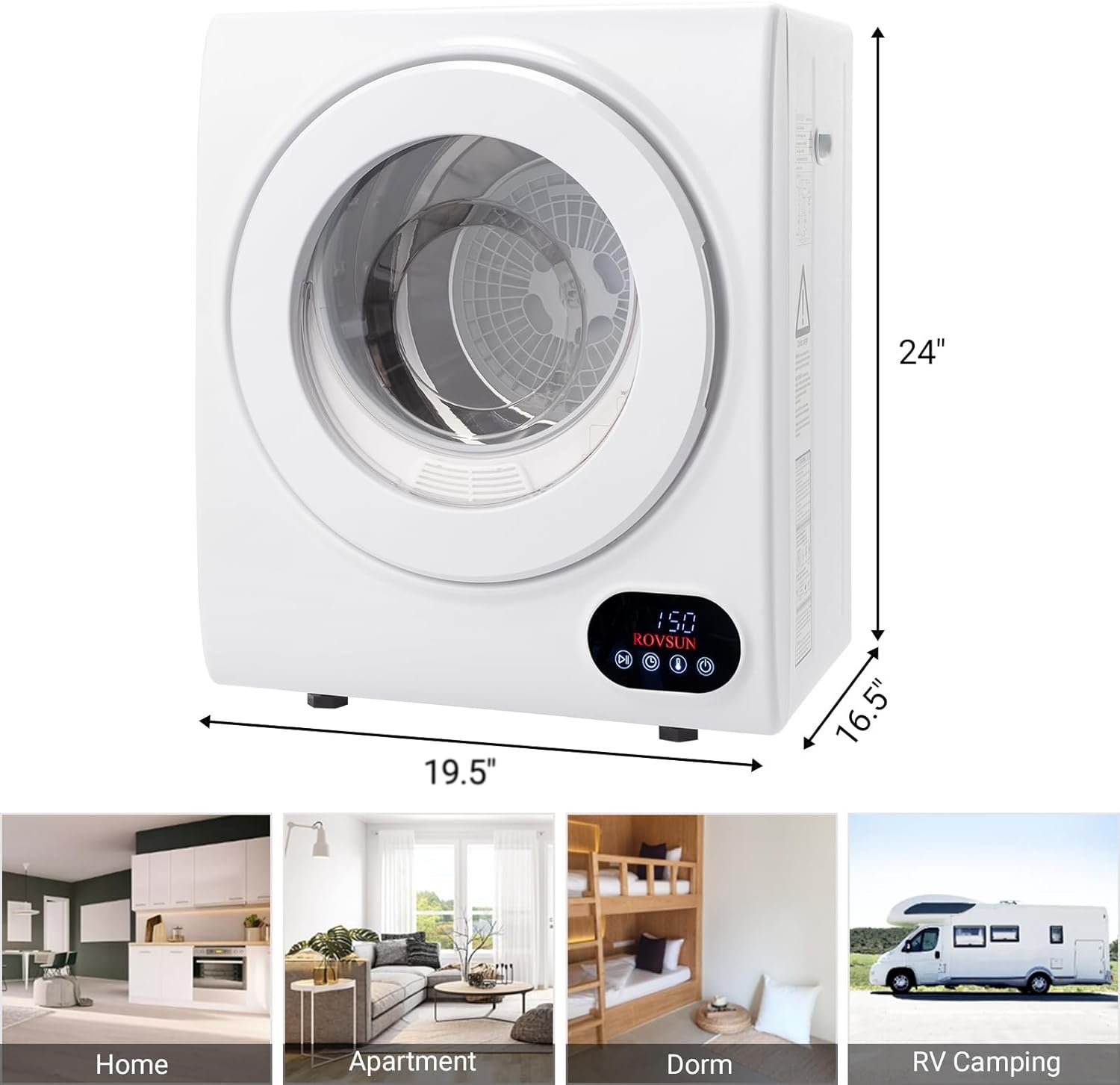 【Compact & Portable】The net weight of this clothes dryer is 37lbs, and the small size 19.5″ x 16.5″ x 24″makes it portable. It’s compact feature is perfect for small space like apartments, dormitories, RVs and more, it can be even mounted on the wall with included mounting kit