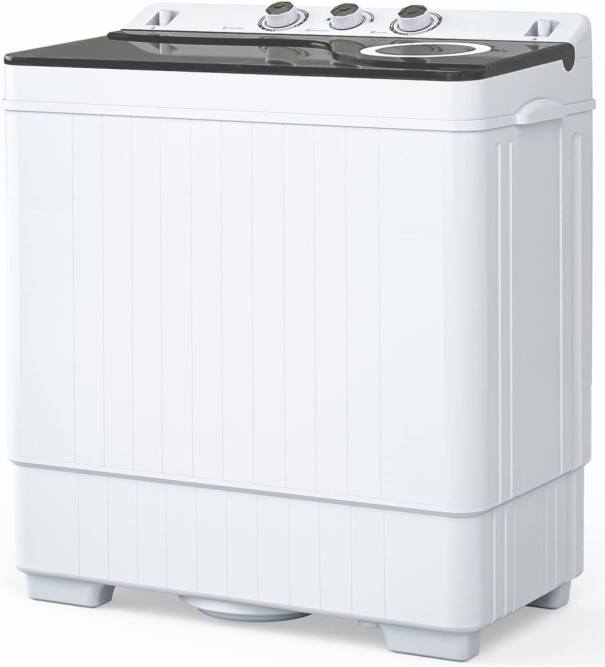 ROVSUN 26lbs Compact Twin Tub Portable Washing Machine, Mini Washer(18lbs) & Spiner(8lbs) / Built-in Drain Pump/Semi-Automatic for Camping, Apartments, Dorms & RV’s (Grey)