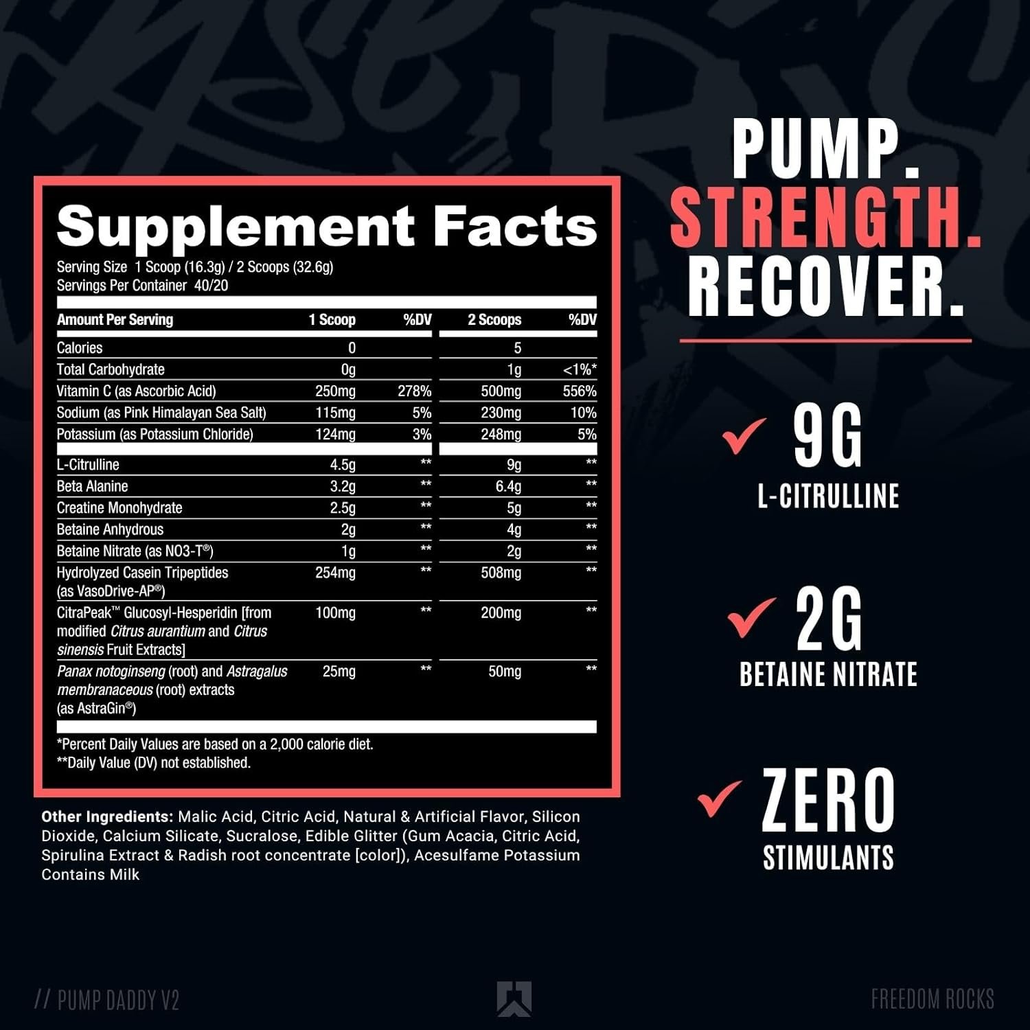 RYSE Up Supplements Signature Series Pump Daddy V2 | Official Noel Deyzel Non Stim Pre Workout | with Citrulline, Beta Alanine, Creatine | 40 Servings (Freedom Rocks)