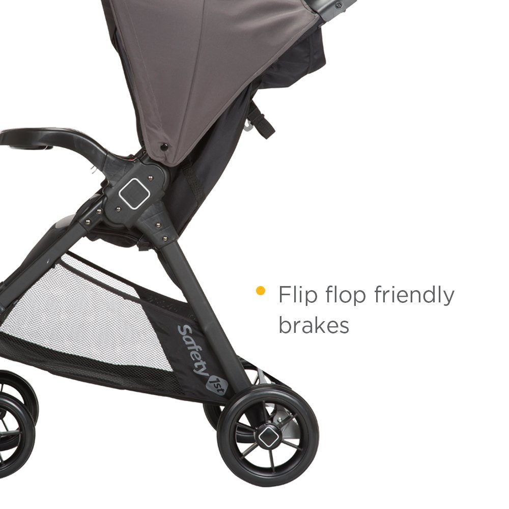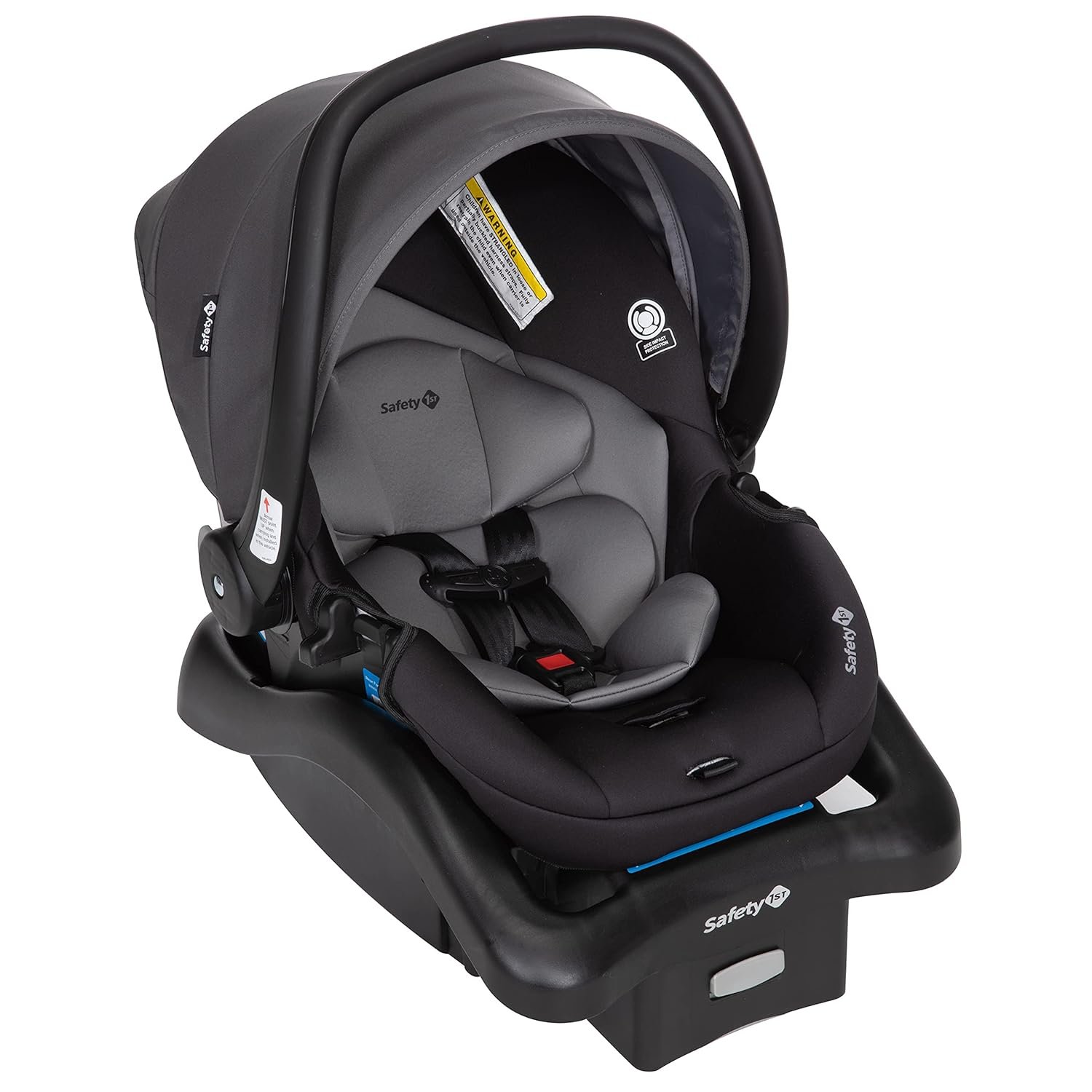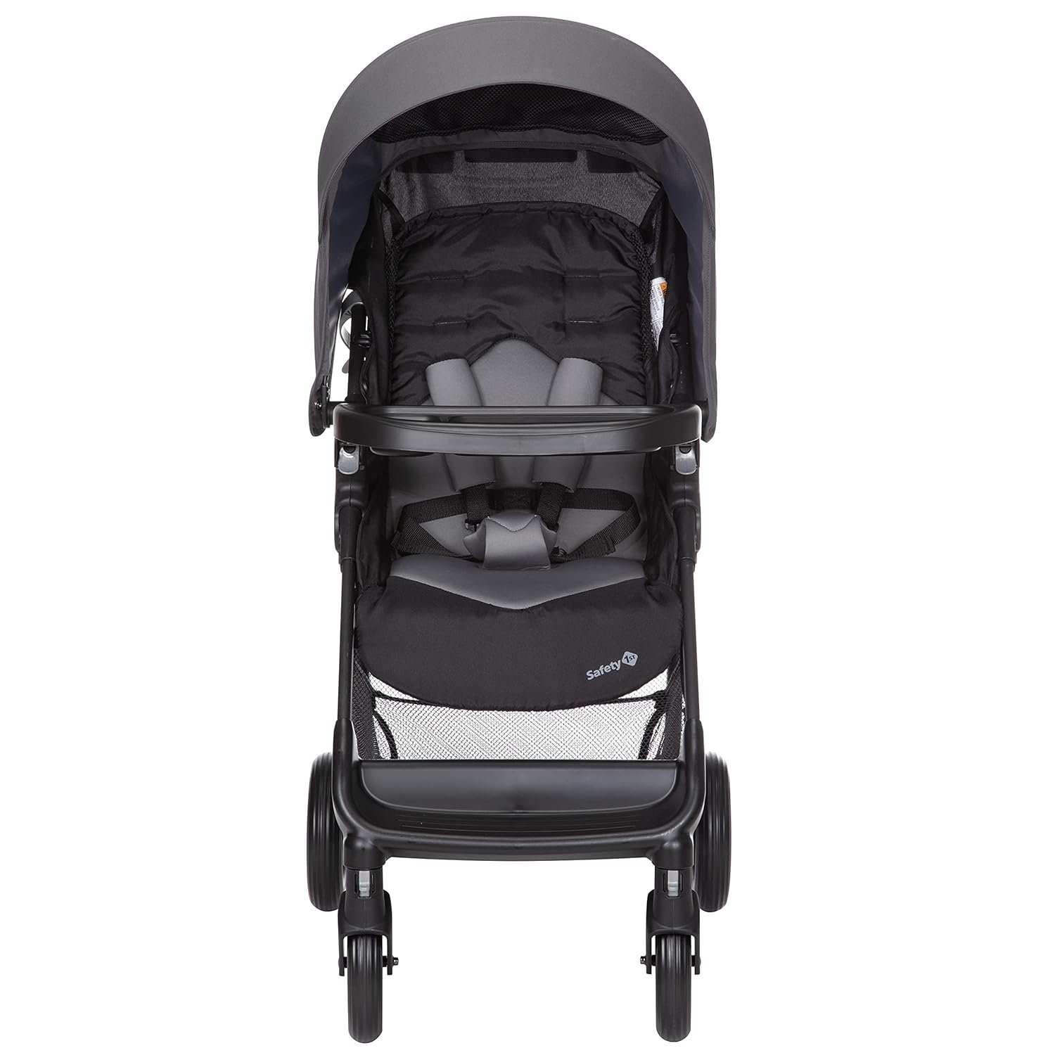 Experience safer travel with your little one using this Safety 1st Smooth Ride Travel System. An ideal choice for carseat stroller combos, this set comes with an OnBoard 35 LT Infant Car Seat, a premier offering in baby car seats known for its superior safety and customized fit. The car seat doubles as a travel system, easily attaching to the stroller with QuickClick for a secure one-click fit. It caters to babies from 4-35 pounds, offering four harness heights and a two-way adjustable buckle, ensuring that it grows with your child just like convertible car seats. Even more, it features an optimized reclined body position for a safer ride. The baby carseat and stroller set is designed with agility and convenience in mind. Its stroller features maneuverable wheels that easily navigate corners and flip-flop friendly brakes for effortless parking. The oversized canopy provides excellent coverage, featuring a flip-out visor for additional protection and a peekaboo window for improved airflow and visibility. Both the parent and child can benefit from the ample storage options. The stroller includes parent and child trays for keeping small items within reach, and with an extra-large basket, you won’t have to worry about larger stuff. When strolling is over, the lift-to-fold design makes putting away the stroller a breeze – simply lift, fold, and you’re done! The stroller remains standing when folded, making it easier to store. With the Safety 1st Smooth Ride Travel System, you and your baby can enjoy more fun and less hassle during outings. Choose this system for the best in strollers and baby car seats and get the blend of functionality, safety, and comfort that your family needs.