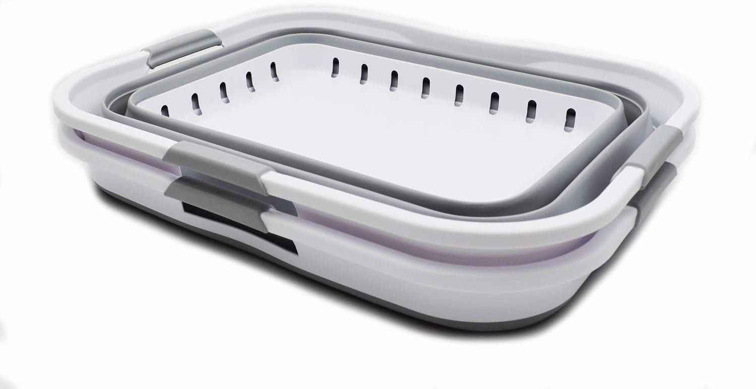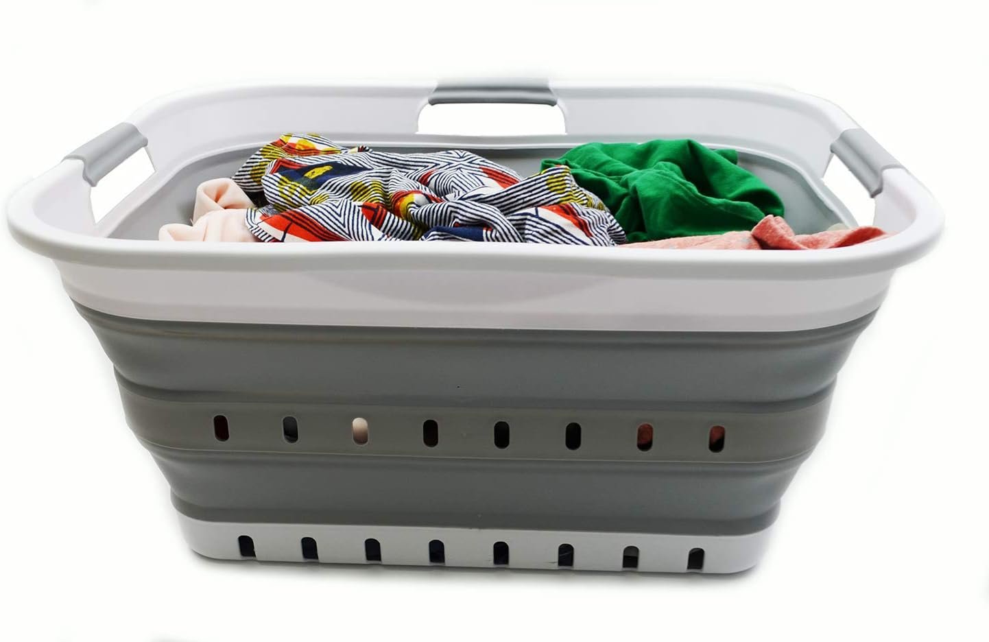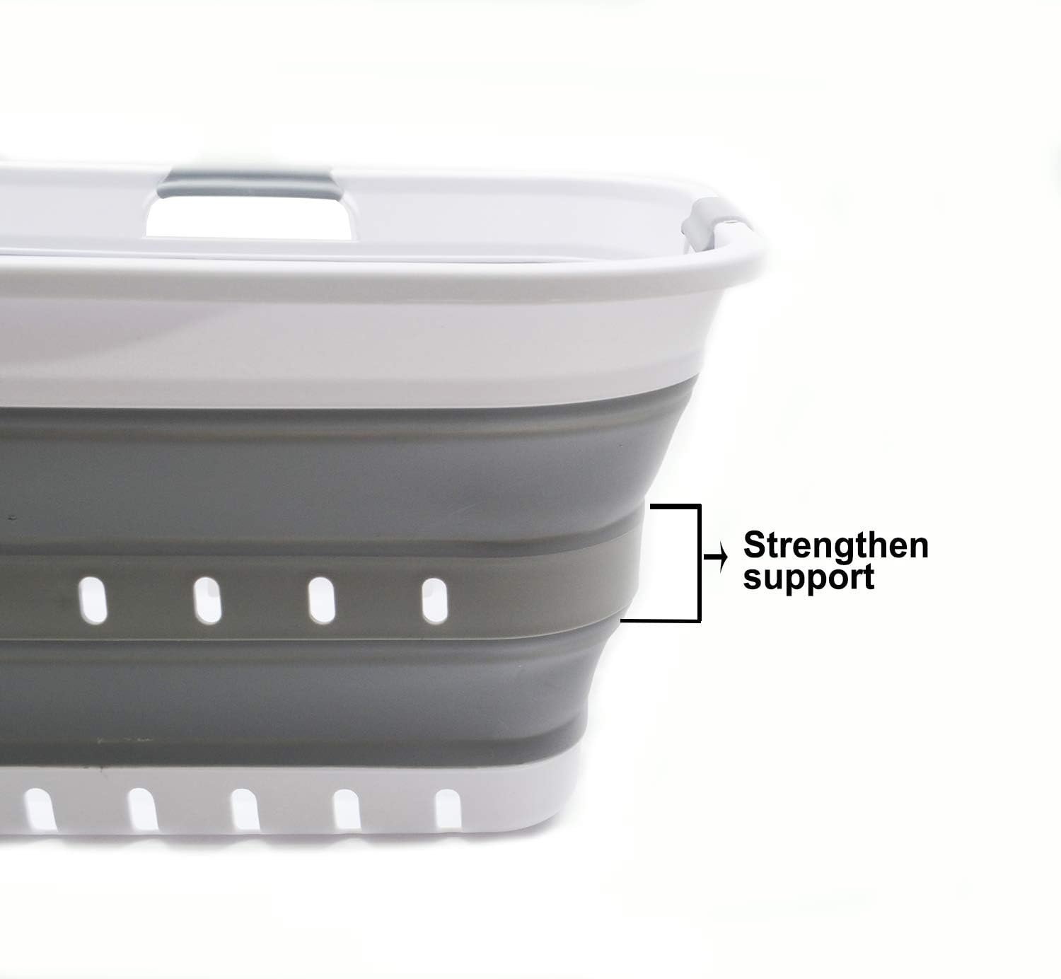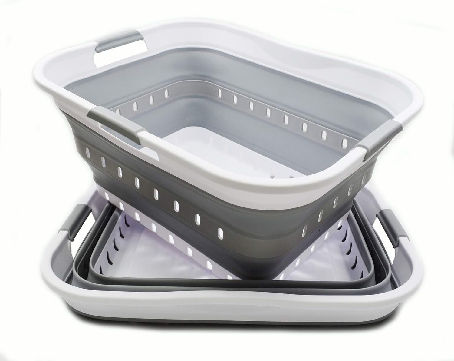 BPA Free. Comfort grip handles for easy carry. User friendly by simply pop-up to open when using and collapses to flat for space saving