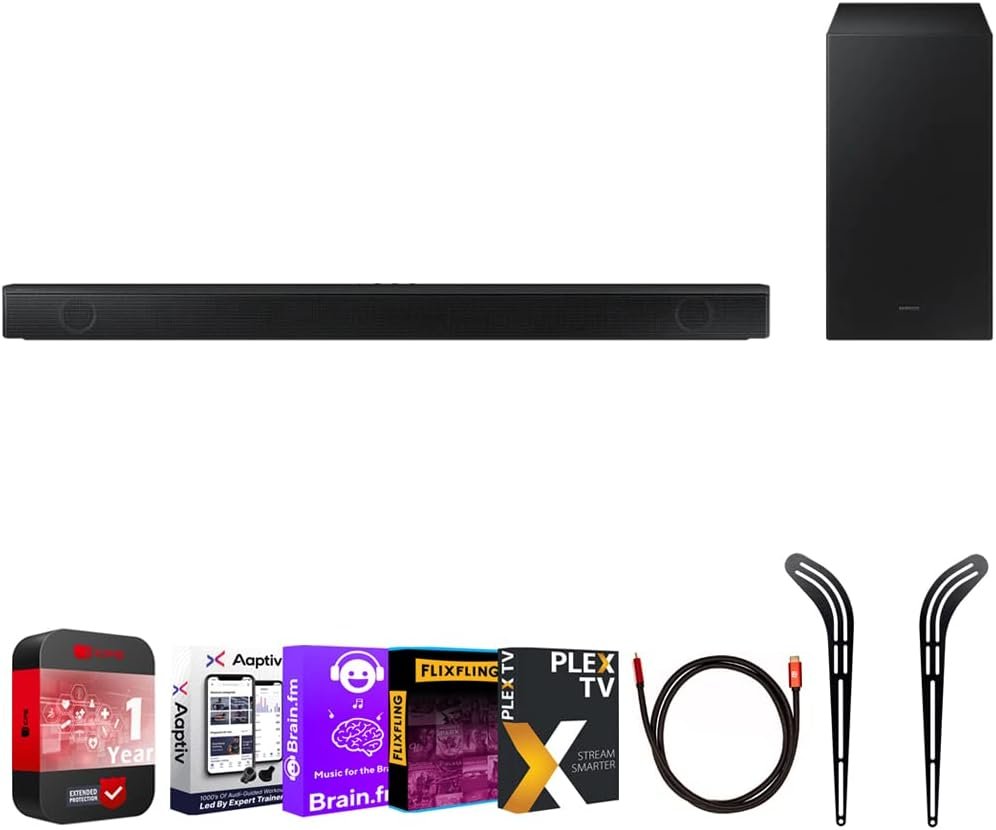 Samsung HW-B550 2.1ch Soundbar with Dolby Audio DTS Virtual:X 2022 | Tech Smart USA Audio Entertainment Essentials Bundle 2020 | Monoprice Universal Soundbar Bracket Mount 23″ – 55″ | Deco Gear 6FT Universal 4K HDMI 2.0 Cable with 28AWG Pure Copper Conductors | 1 YEAR EXTENDED Coverage in ADDITION to the Included FULL Manufacturer Coverage