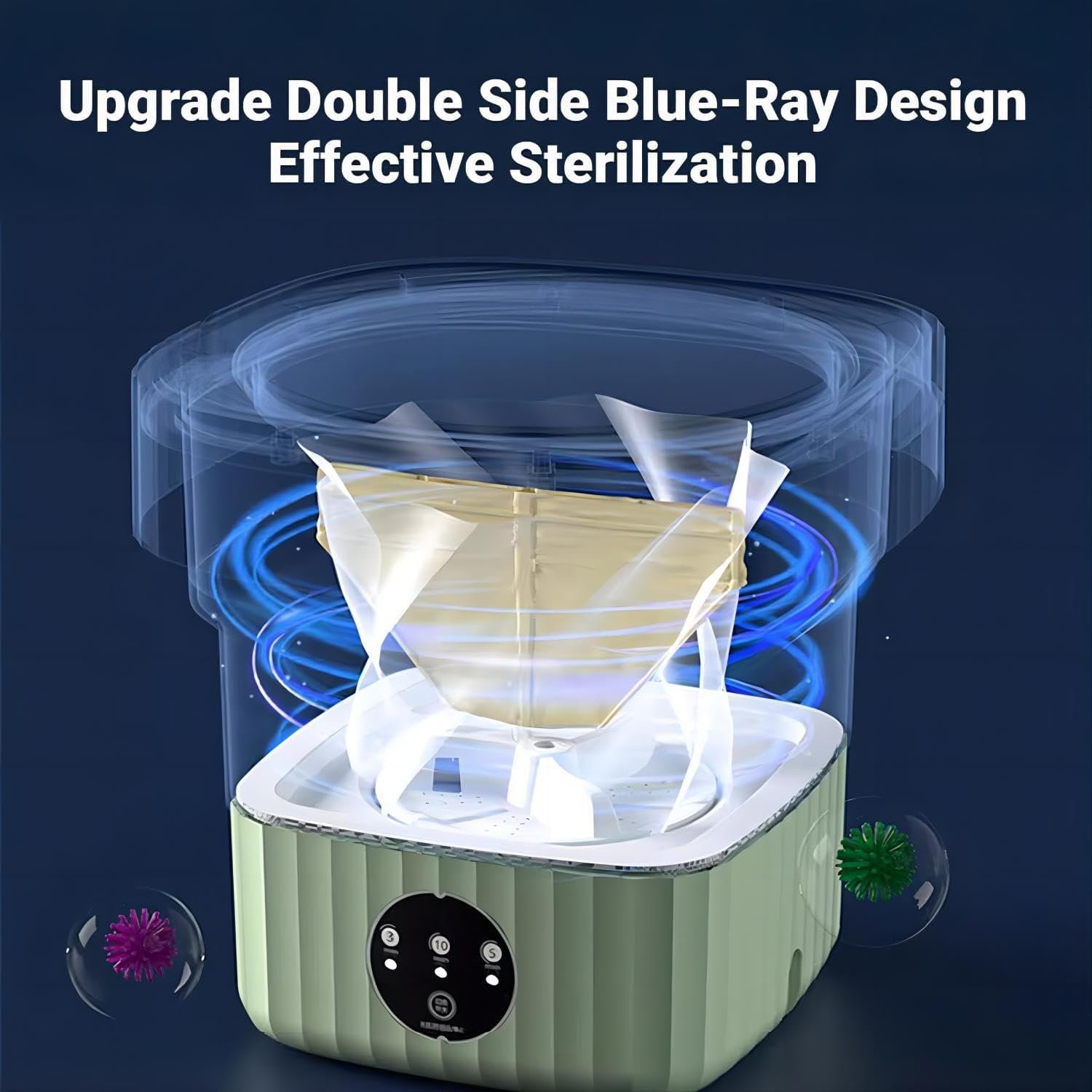 【POWERFUL DECONTAMINATION WASHER】This mini portable washing machine provides all-round imitation hand scrubbing, suitable washing speed, and strong decontamination. With blue light,it is very suitable for washing small clothes such as baby clothes, underwear or socks, keeping you and your family healthy!