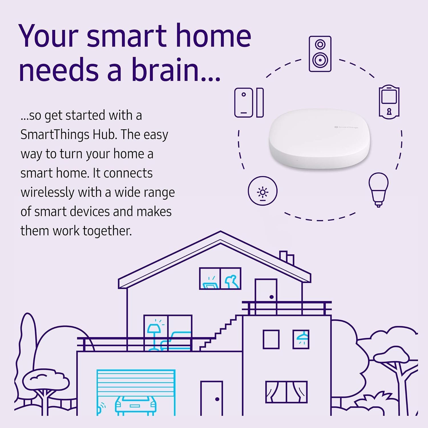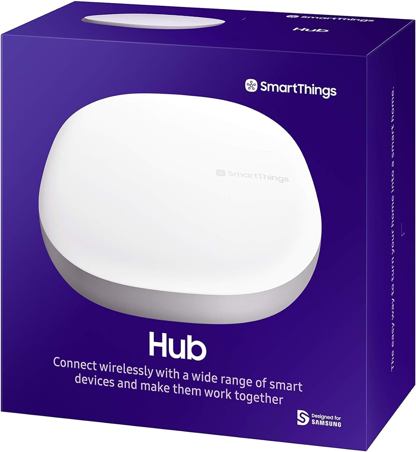 The Samsung SmartThings Hub 3rd Generation is a home automation hub that allows you to monitor and control compatible smart devices like lights, locks, sensors and more using the SmartThings app.