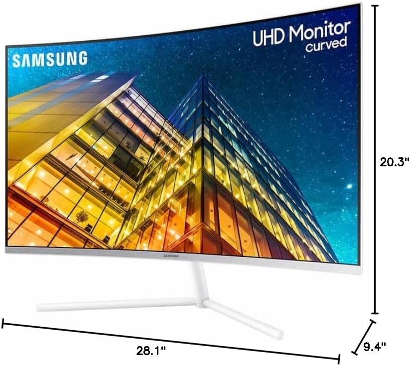 Discover the Samsung 32-Inch UR591C UHD 4K Curved Gaming Monitor (LU32R591CWNXZA) with a slim fabric texture design. This 4K gaming monitor offers stunning ultra HD picture quality for PC viewing, gaming and more. Experience lifelike detail among an incredible 1 billion colors for detailed, natural looking and extremely realistic images. The curved monitor from Samsung captures length, width and height, providing an almost 3D experience. Curved monitors also eliminate distortion due to the way they project light on the screen. In addition, a curved gaming monitor is more comfortable for your eyes, so you can reduce eye strain through the fluidity of movement on the display. In general, curved monitors are some of the best options for gaming, bringing the immersive experience into your home. With this curved gaming monitor, your eyes will maintain a constant focus distance from the screen, which helps reduce eye fatigue over extended periods of time. This 32-inch computer monitor offers curved contours and corners and a slim fabric texture design. It is less than an inch thick (0.27 inches) and features a slender V-slim metal stand which holds cables. Use this 4K UHD monitor at home or at your business for understated style in any setting. Thanks to multiple input ports, you can enjoy the Picture-by-Picture feature with this monitor, which allows you to view two different sources of data without degrading the resolution. The UR59C curved monitor is LED-lit with an AC 100-240V power supply. NOTE: Make sure to update video card drivers for PC. Product Dimensions With Stand(Width x Height x Depth)- 28.1 inches x 20.3 inches x 9.4 inches. Includes Wacky Jacky Microfiber Cleaning Cloth