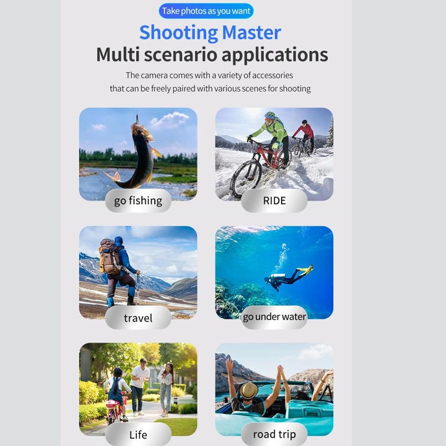 HD VIDEO CATCH: This PD3 4K sports camera adopt for IMX335 lens and equipped with for SigmaMstar MSC8328Q master control scheme, which can provide 4K30fps, 2.7K 30fps, 1080p60fps and other resolution options, whether is shooting scenery or recording action, can ensure a clear, stable and fine picture effect