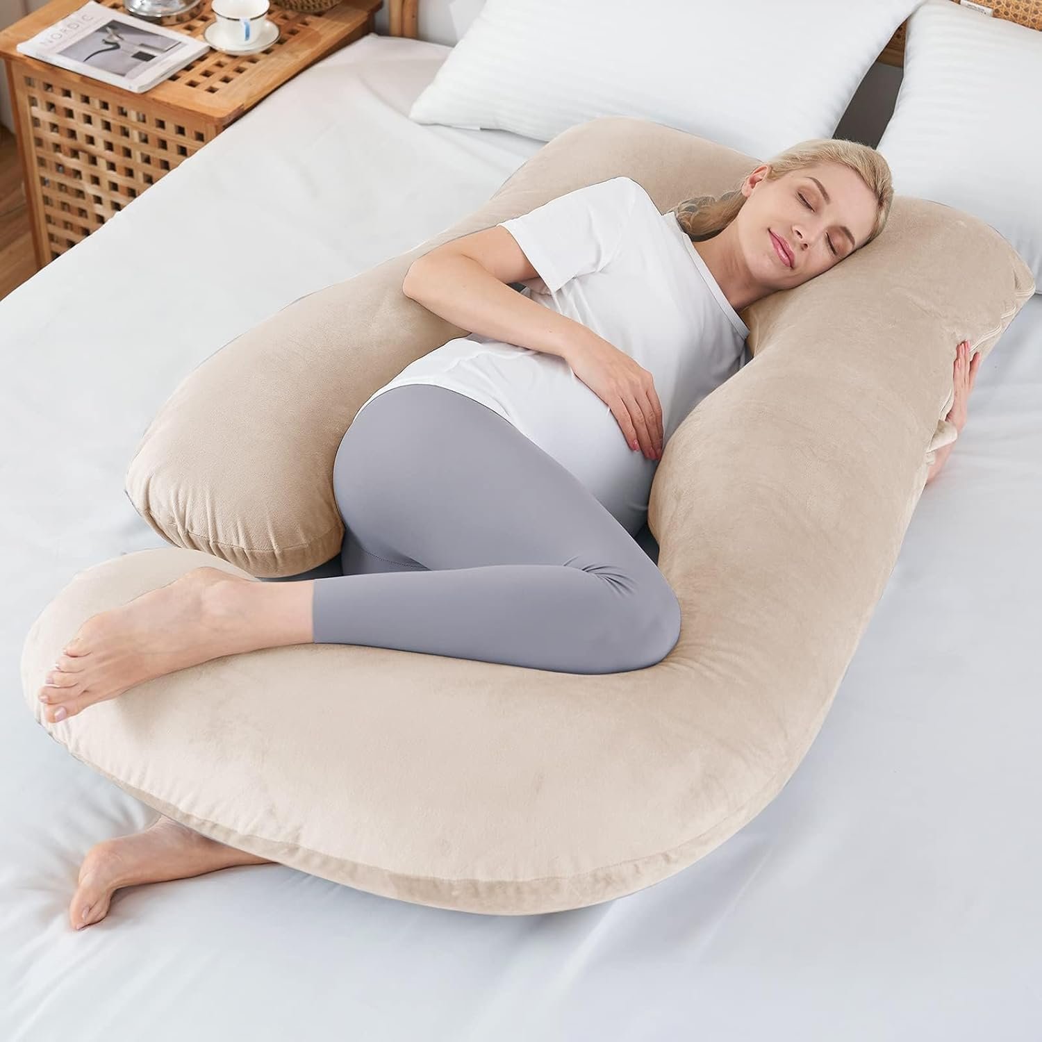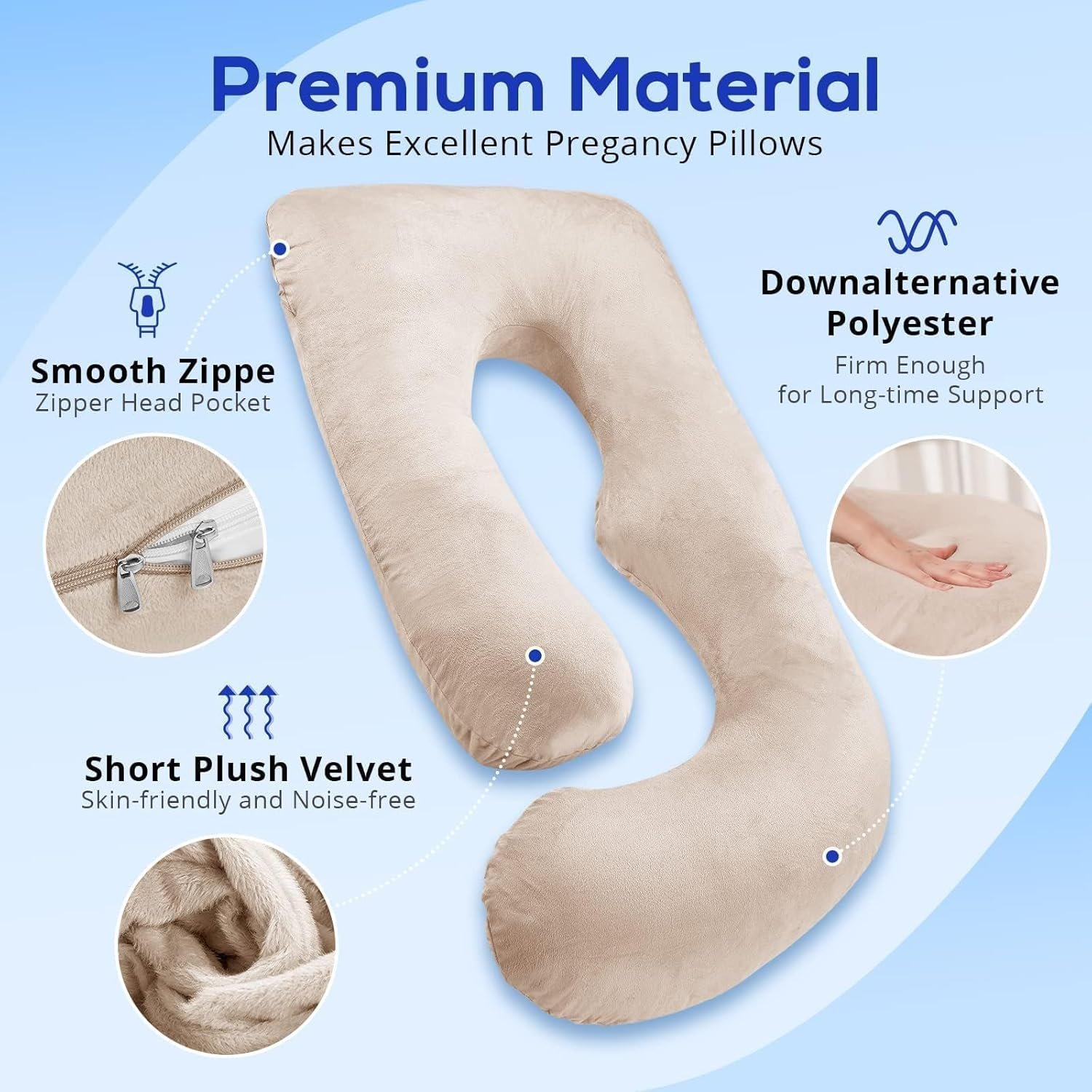 【Machine Washable Velvet Cover】These pregnancy pillows are twice covered with a polyester inner and a velvet outer. The outer velvety cover is super soft and cozy to touch. Features a zipper closure, the cover of this side sleeper pregnancy pillow can be removed easily and washed and dried in the washing machine. Absolutely great choice for pregnant women.