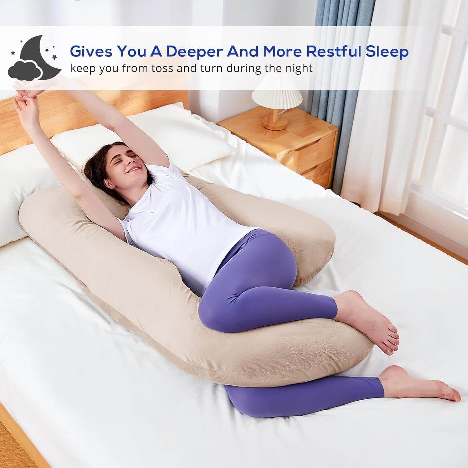 【Upgraded U Shaped Pregnancy Pillow】Combining the pros of traditional body pillows, the SASTTIE 4.0 U-shaped maternity pillow is definitely a comforting and supportive sleep helper as your belly gets bigger. The ergonomically designed shape could fit your body perfectly and provide firm support for your sore shoulders, numb arms, growing belly, tight back, as well as swollen feet.