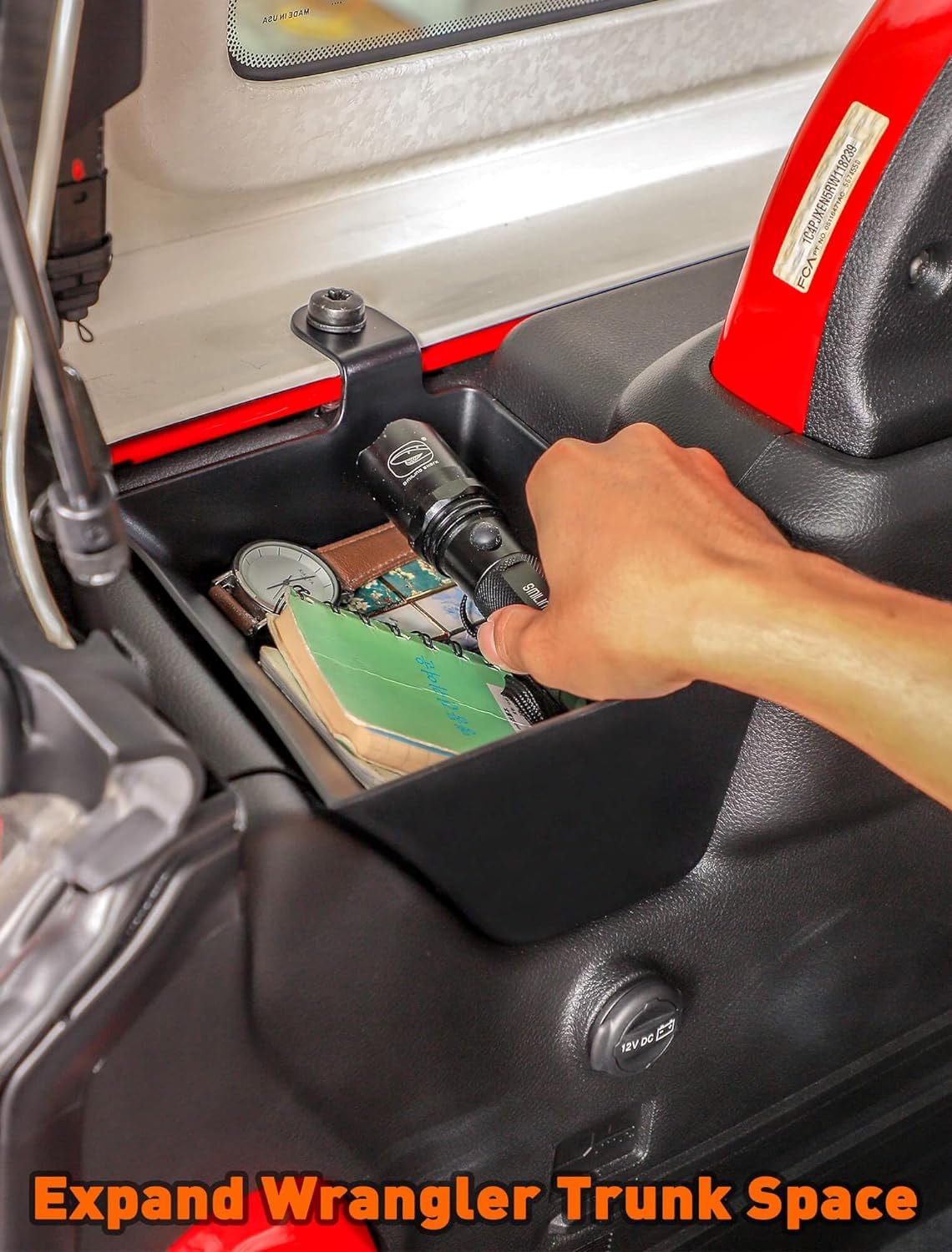 EXTRA STORAGE — Create extra storage space for your stuffs on the rear trunk by use this new wrangler storage accessories, convenient for place rope, toilet paper, flashlights, tools, drinks and others etc.