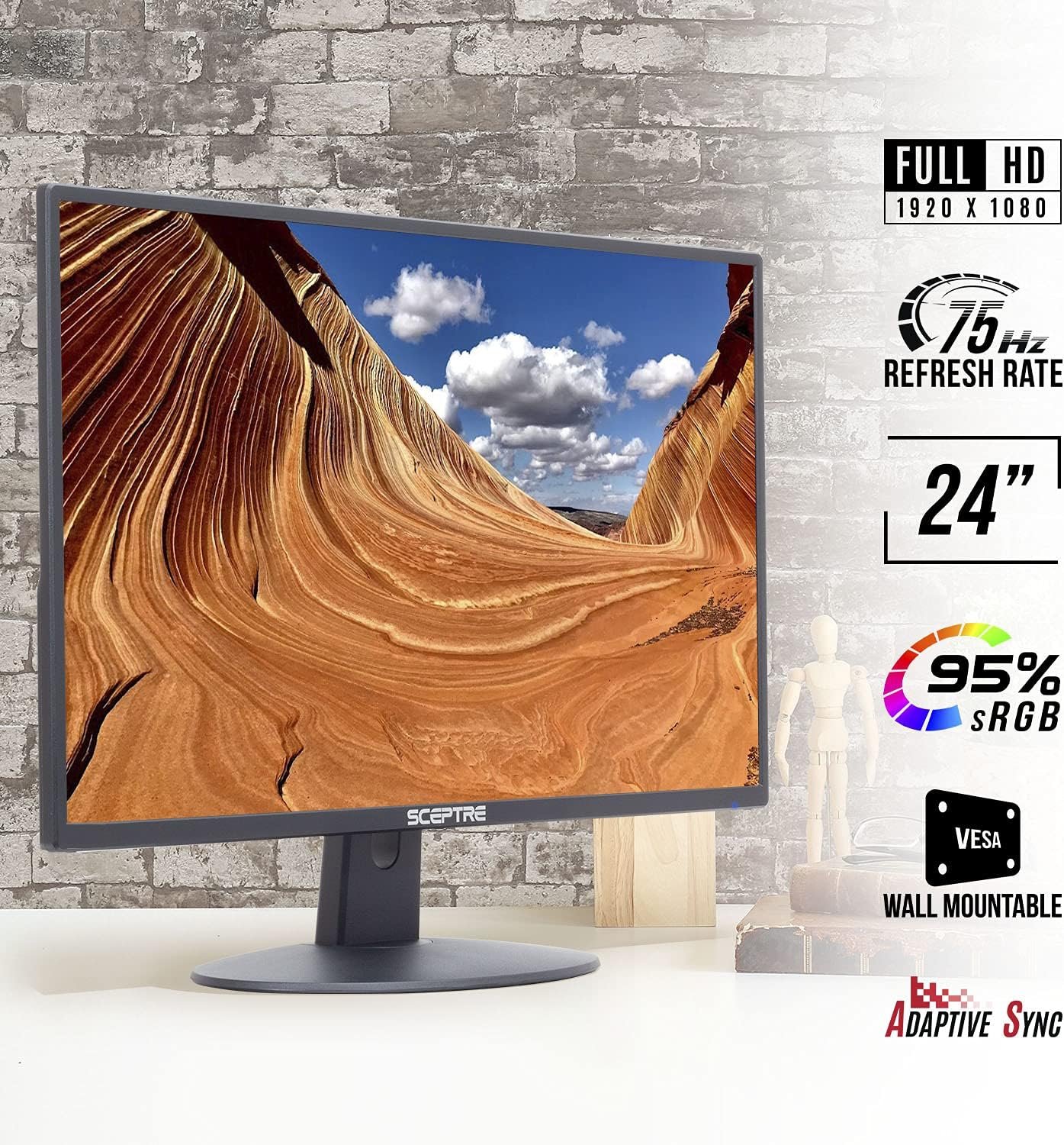 Sceptre 24″ Professional Thin 75Hz 1080p LED Monitor 2x HDMI VGA Build-in Speakers, Machine Black (E248W-19203R Series)