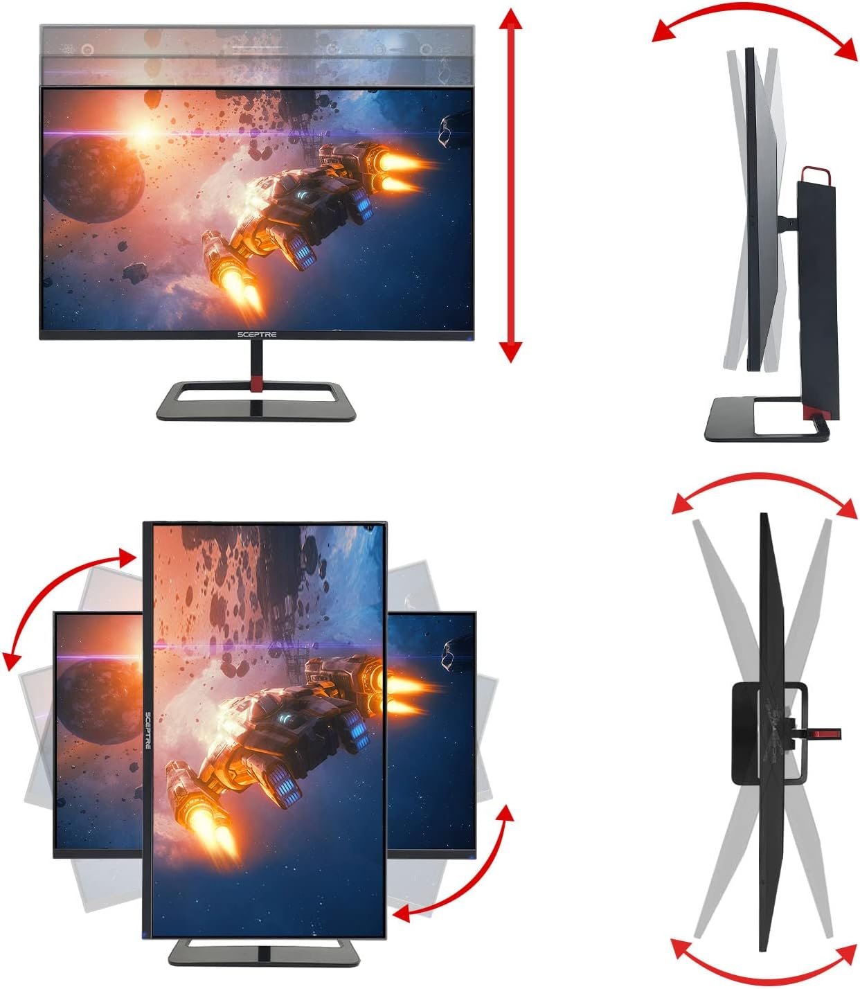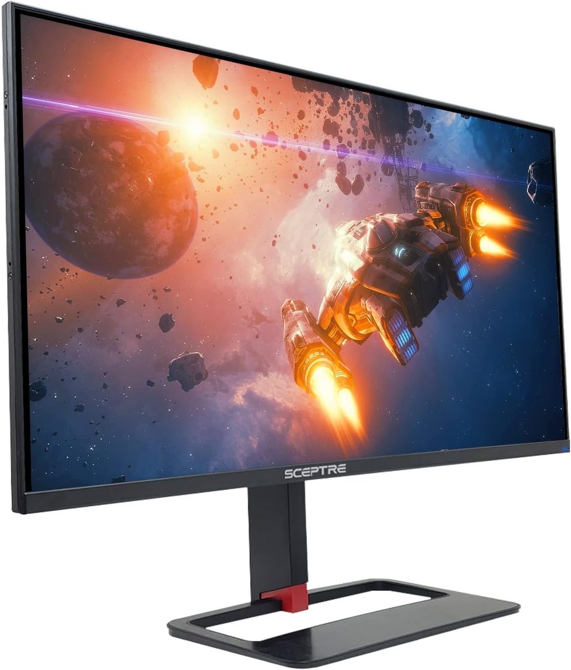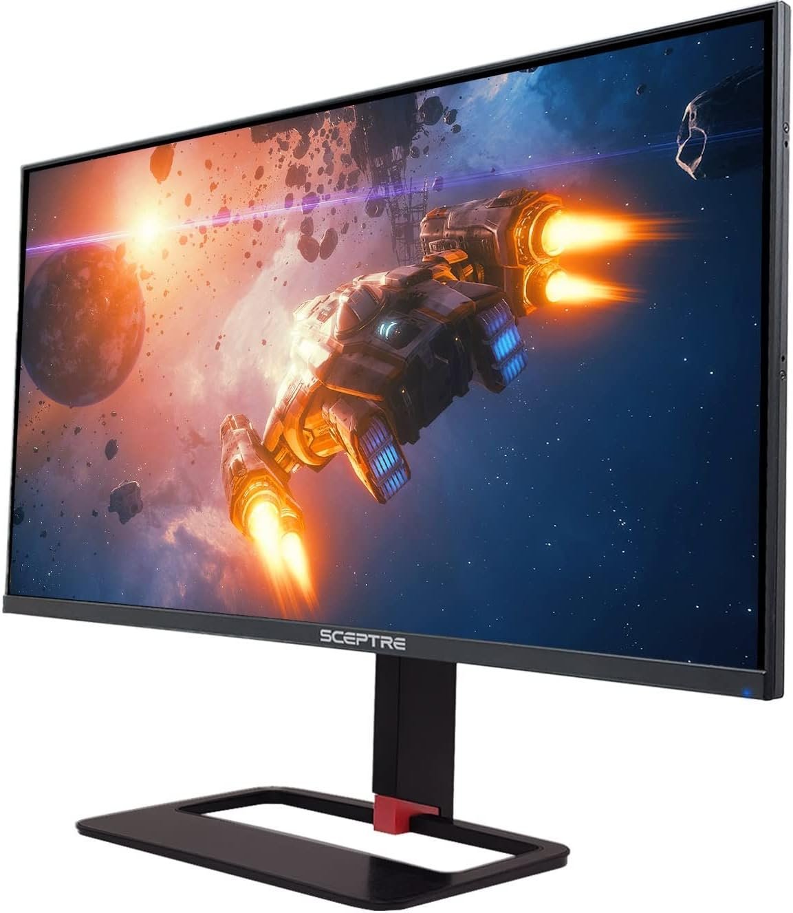 Sceptre’s E275B-QPN168 27-inch 144Hz QHD Gaming Monitor – Explore the Unknown. In competitive gaming, high frame rates and lightning fast response times all matter. With a fast 1ms response time, motion blur and ghosting is eliminated and delivers an exceptionally crisp imagery in the midst of action-packed scenes in both gaming and viewing entertainment. Alongside an ultra-smooth 144Hz refresh rate that transitions frames instantly, you’ll never miss a beat to perform above and beyond your own expectations. Powered by an IPS (In-Plane Switching) Panel that delivers consistent and accurate color performances, this panel provides sharp visibility from multiple viewing angles. With an LED Display that delivers sharper contrasts between lights and darks while delivering a vast array of rich colors, a more pleasing experience with moving images comes to play. Moreover, HDR400 (High Dynamic Range) further enhances dynamic contrast ratio, resulting in 50% brighter colors than SDR. With 450 cd/m² brightness, being able to detect subtle and robust color variations is easier and comes in handy when working on creative projects with remarkably vivid colors illuminating the screen like never before. With a 27-inch screen equipped with Blue Light Shift that reduces the amount of blue light emitted from your monitor, you can now game and work longer with more comfort while protecting your eyes from fatigue, irritation, and strain. With more than double the standard refresh rate of regular monitors, 144Hz gives gamers an edge in visibility as frames transition instantly, leaving behind no blurred images. Coupled with a 1ms response rate, eliminating ghosting and piecing together precise imagery during action-packed moments makes this monitor ideal for all categories of entertainment. Our 27-inch curved monitor also adds AMD FreeSync™ Premium, providing gamers with smoother video and seamless on-the-spot movement in fast-paced games. AMD FreeSync™ Premium allows gameplay to reach the highest levels of performance by accelerating the frame rate to at least 144Hz at QHD resolution and delivering low latency. FPS (First Person Shooter) and RTS (Real-Time Strategy), Sceptre’s custom set display settings for gaming, are also available for a more enhanced experience. Anti-flicker technology is also available to provide a crisper image by preventing the backlight from flickering periodically. With adjustable stands that tilt and swivel for your ergonomic needs, find the perfect angle for your monitor to reduce eye strain and reduce glare. Multiple ports are offered with 144Hz on DP 1 & HDMI 1, with up to QHD 75Hz refresh rates available on HDMI 2 & HDMI 3. With an ultra slim frame, this monitor also features an aesthetic back cover equipped with LED lights to deliver a unique and modern design. Attachable to the top and sides of the monitors, gaming covers are also available for the E275B-QPN168+, providing more privacy and reduction of outside distractions for a more focused view on the task at hand (please contact our manufacturer for this feature). A VESA wall mount pattern is also equipped, allowing the freedom of either attaching the monitor to an articulating arm or mount on the wall to free up space at your work or battle station. Also sporting an bezel edgeless design, gaming has never looked so clear.