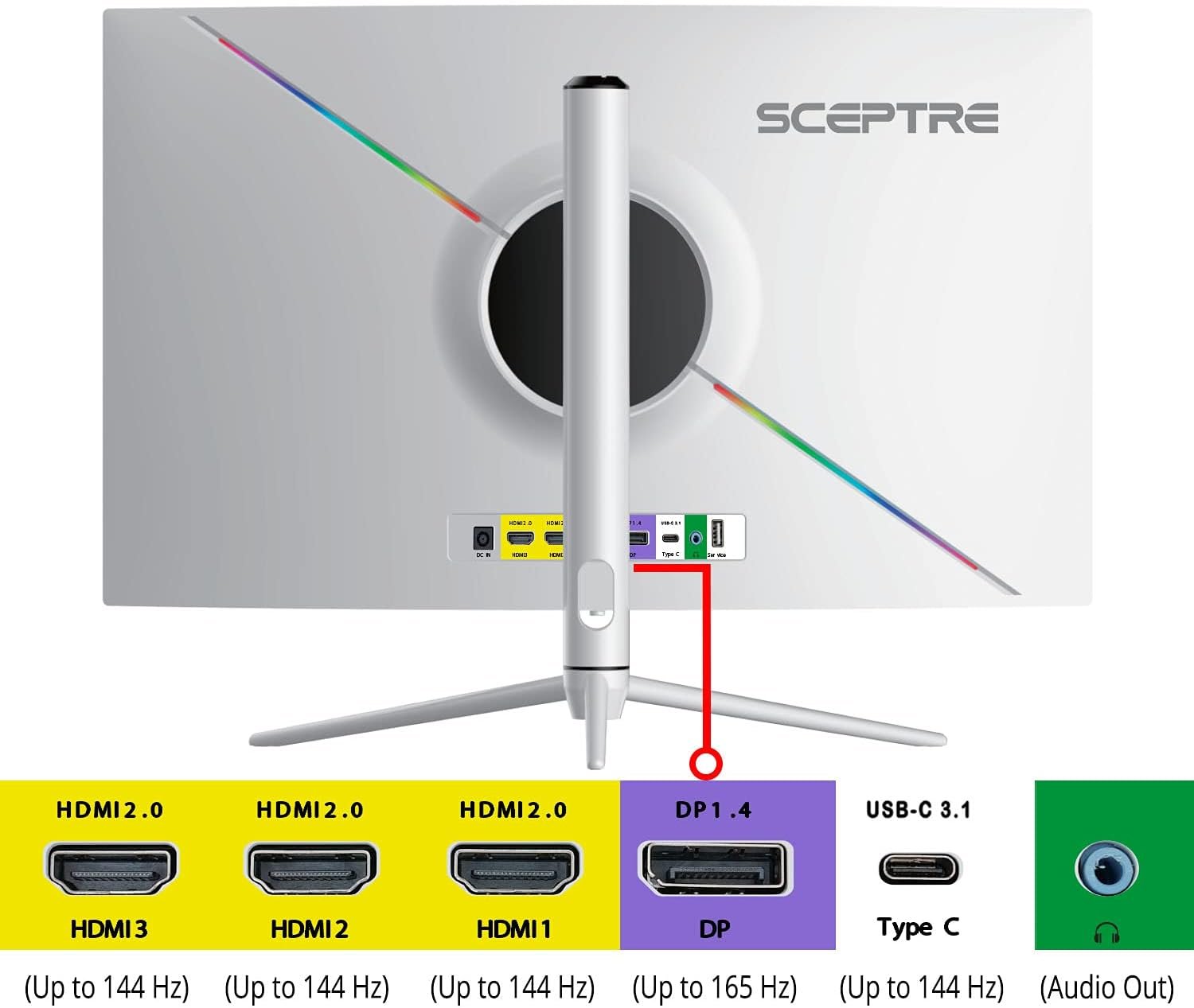 up to 165Hz Multiple Ports: The DisplayPorts deliver up to 165Hz refresh rate, providing incredible visibility & agility to beat your standard player. All 3 HDMI ports and the USB-C port provide an impressive 144hz refresh rate.