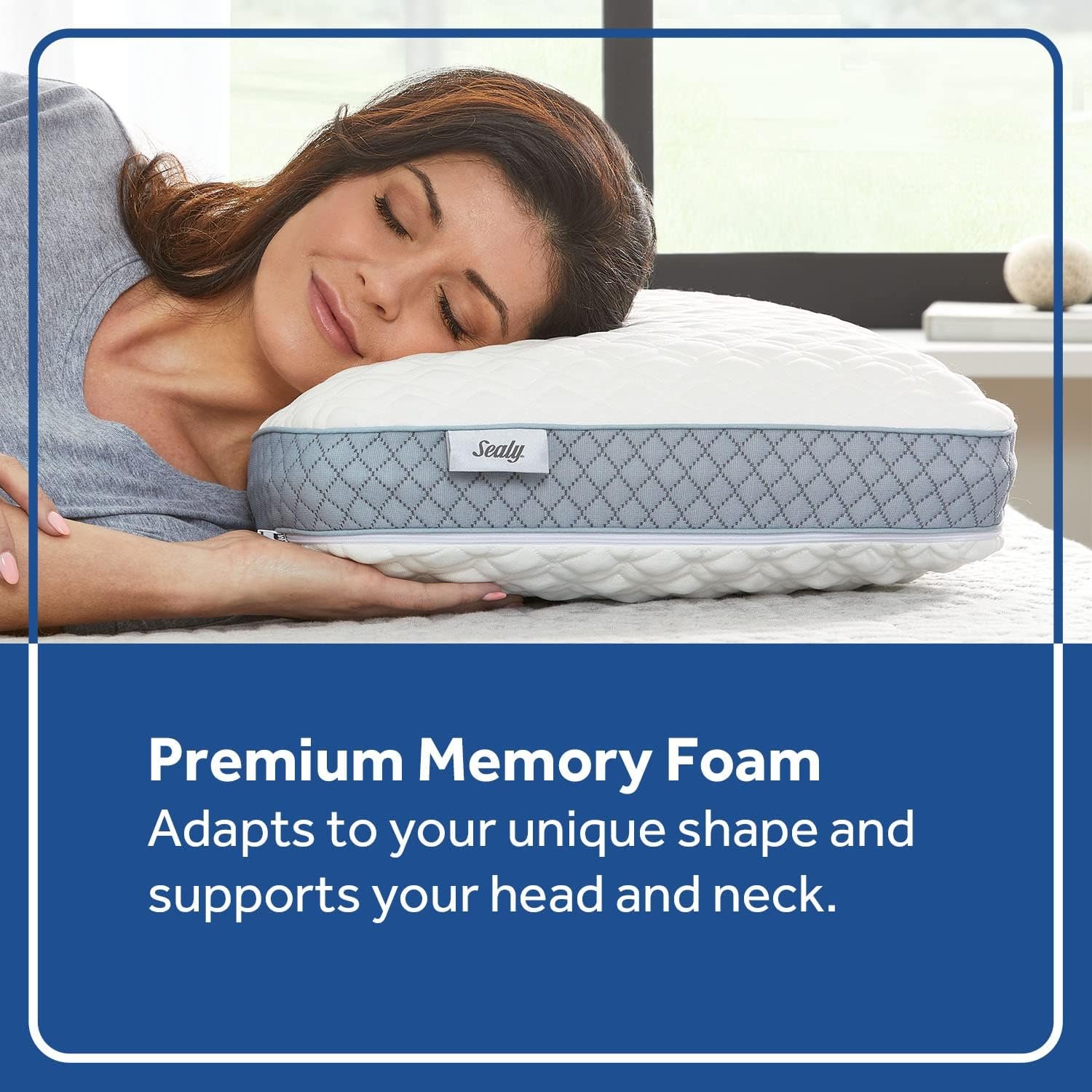 MEMORY FOAM GEL PILLOW (Sealy Essentials): Adaptive memory foam with refreshing gel layer for cool comfort.
