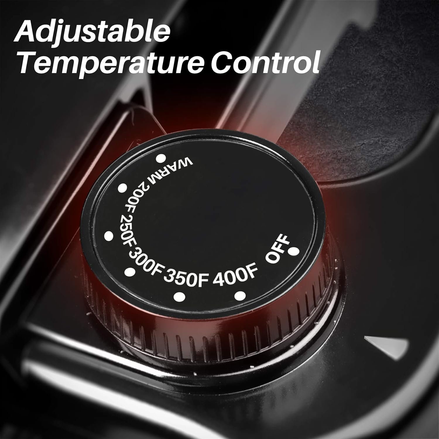 Cool-touch handles and housing. Removable adjustable thermostat control. Heating indicator light. Product measurements: 20-1/4