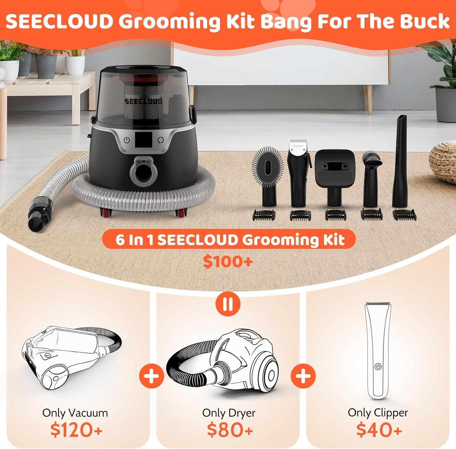 AFTER-SALES SERVICE – Every SEECLOUD pet vacuum cleaner is professionally inspected before it leaves the factory to ensure that the performance meets our requirements before it is shipped to you! We offer a 12-month warranty, if you have any questions about using your SEECLOUD dog trimmer for grooming, please feel free to contact us and we will be at your service 24 hours a day!