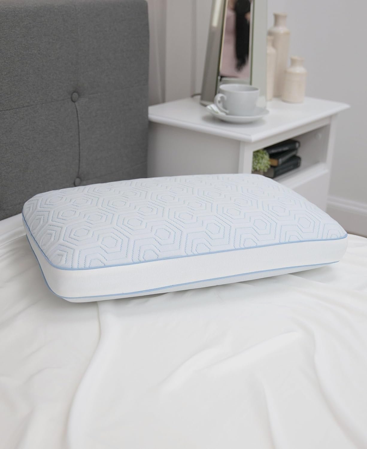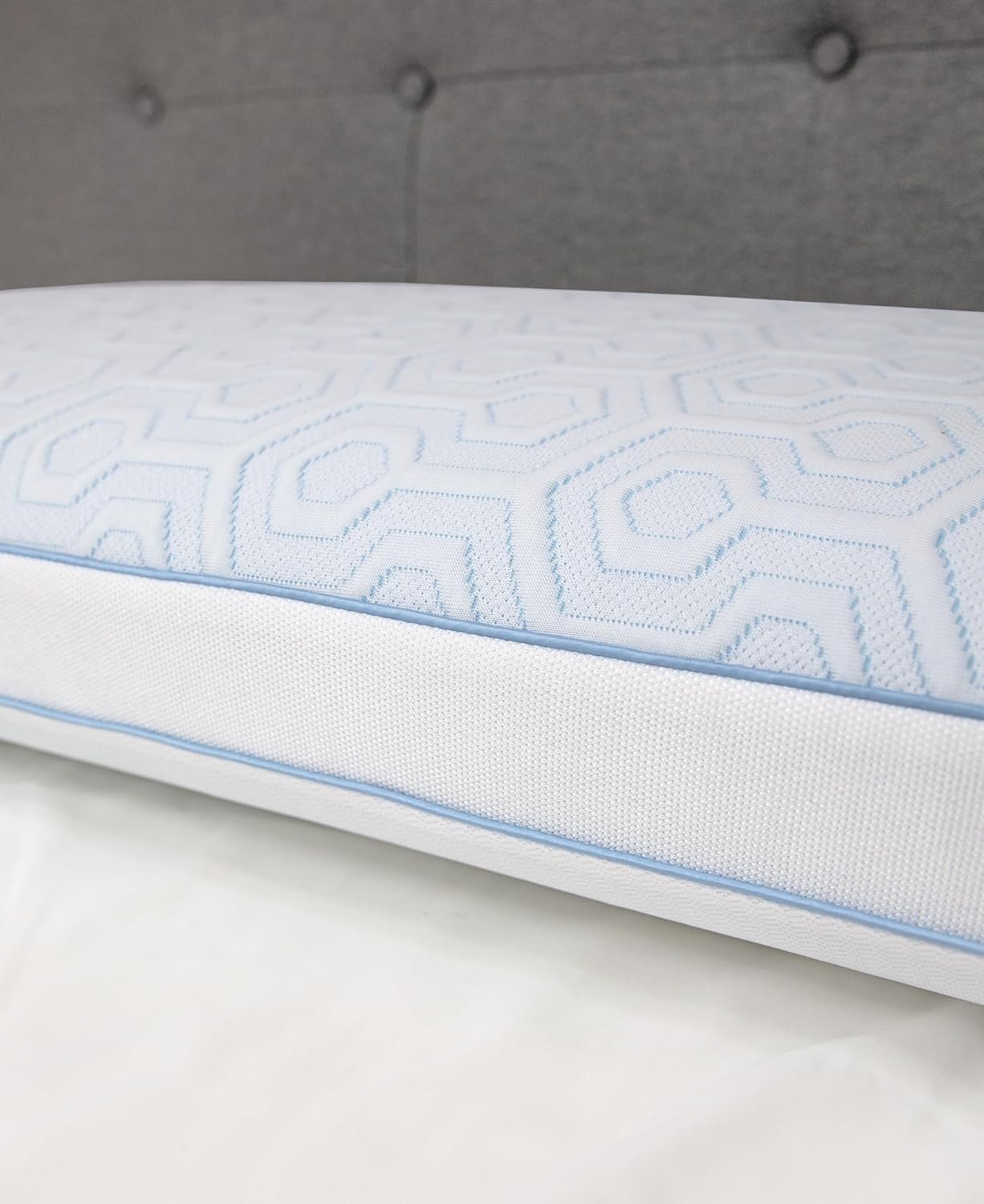 Gusseted sidewalls cradle the head while aligning the spine to a more natural sleep position to provide support for all sleep styles