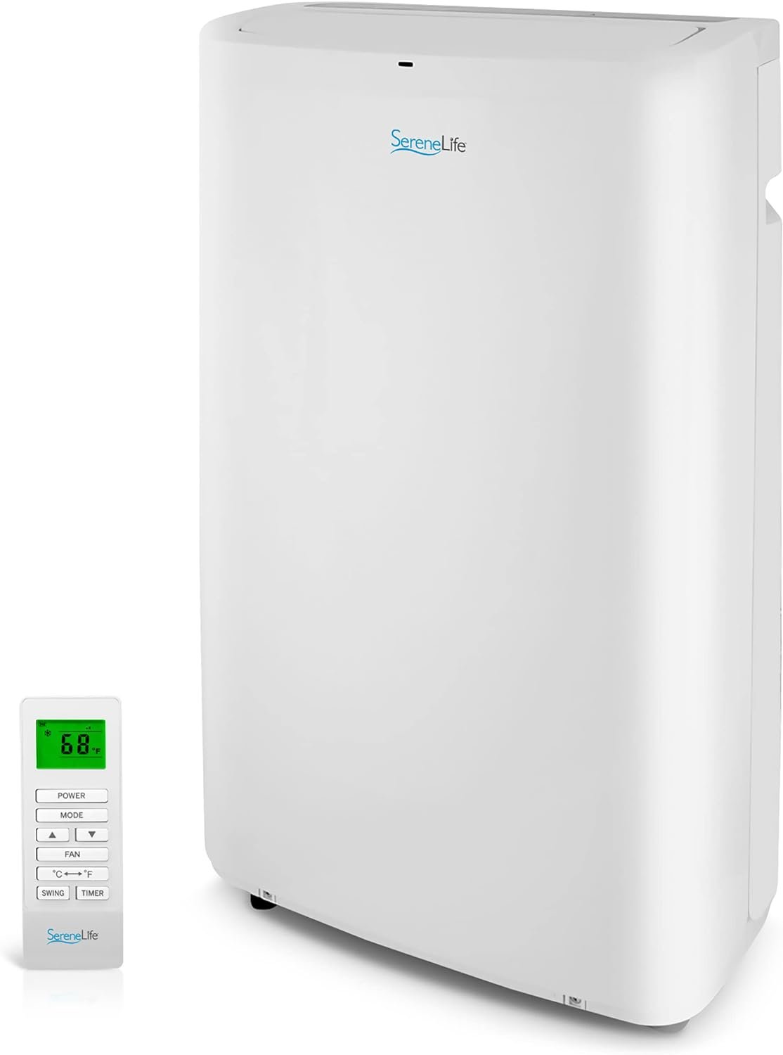 Features: – Removes up to 50 pints/24 hours with Continuous Drain Option for Long Unattended – Operation – Automatic Self-evaporation Technology – Metal Control Box to Prevent from Fire and Exploding – Rotary Compressor – Universal Castors for Moving Freely – Wifi function – Lightweight & Portable A/C Unit – Compact Freestanding Room Air Conditioner – (3) Operation Modes: AC Cooling / Dehumidifier / Fan – Hassle-Free, Quick Setup Cooling – Simple Electric Plug-in Operation – Convenient Wide-Area Climate Control Room AC Coverage – Push Button Control Panel with LED Display – Time, Temperature & Fan Speed Adjustment Settings – Includes Universal Window Mount AC Exhaust Kit – Removable & Washable Air Filter Screen – Modern Style, Sleek Body Housing – Energy Efficient: Low Power Consumption – Low Noise Level Motor – Rolling Wheels for Easy Portability – Used for Home, Office, School & Business Rooms What’s in the Box: – AC Unit – Exhaust Hose – Window Installation Plate – Remote Control Technical Specs: – Power Supply: 115V/60Hz – Rated Power: 1220W – Refrigerant Type: R32 – Cooling capacity (ASHRAE): 14,000 Btu/h – Cooling capacity (DOE): 10,000 Btu/h – Coverage Area: Cools Rooms up to 500 Square Feet – Air Flow: 400 Cubic Meters / Hour – Operating Modes: Cool / Fan / Dry (Dehumidifier) – Moisture Removal / Dehumidifier: 1.5 Liters / Hour – Operating Noise Level: 57 dBA – Fan Speed Settings: Three Level, Low/Medium/High – Temperature Unit Selectable: °C / °F (Celsius / Fahrenheit) – Adjustable Timer Settings: Up to 24 Hours – Construction Material: High Impact Polystyrene (HIPS) – Battery Operated Remote Control, Requires (2) x ‘AAA’ Batteries, Included – Power Cable Length: 4.3’ ft. – Extendable Exhaust Hose Diameter: 5.9 in – Extendable Exhaust Hose Max: 59 in – Extendable Window Kit: 26.6-49.7 in – Product Dimension (L x W x H): 32” x 18.5” x 15.4” -inches