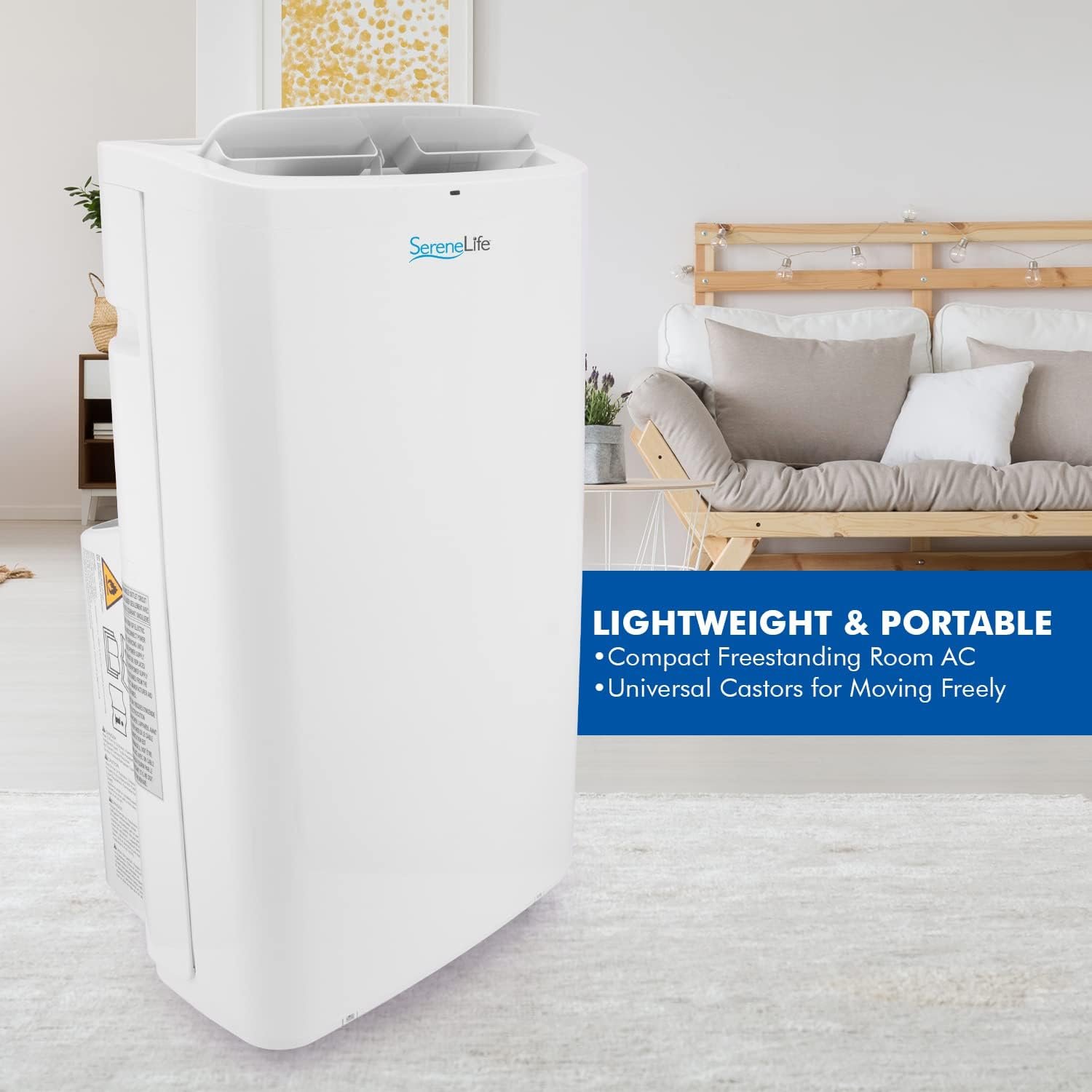 FREE STANDING DESIGN: The portable air conditioning unit features a free-standing design w/ modern style, sleek body housing & can be used in any bedroom, living room or garage at home or office. Also has rolling wheels & includes window mount kit