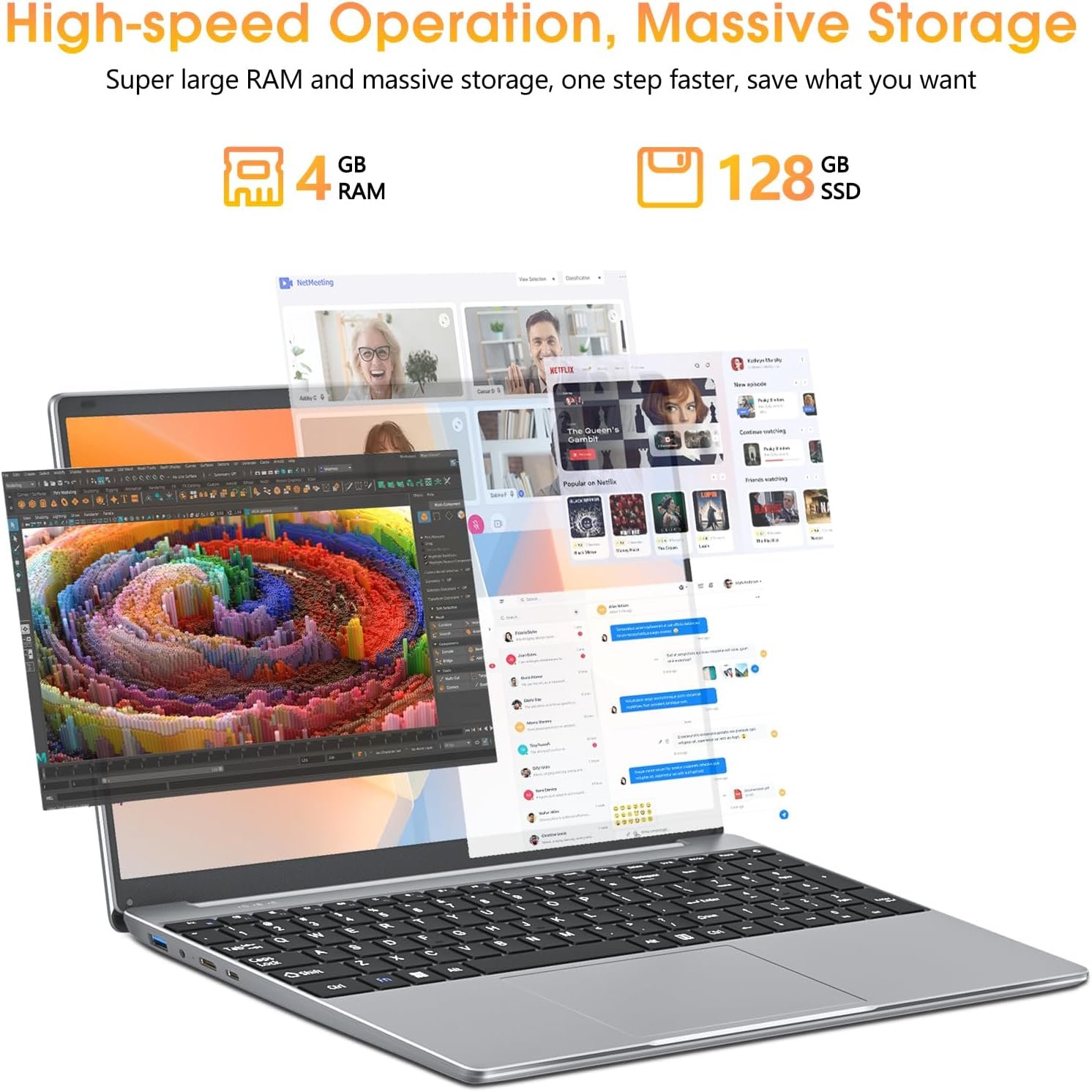 EFFICIENT PERFORMANCE: Equipped with 4GB high-speed DDR4 memory, 128GB SSD storage and faster, smoother and energy-efficient performance, this laptop can easily handle complex tasks. Supports the extension of the TF card of 512 GB and the 512 GB SSD can be replaced with a maximum SSD of 1 TB.