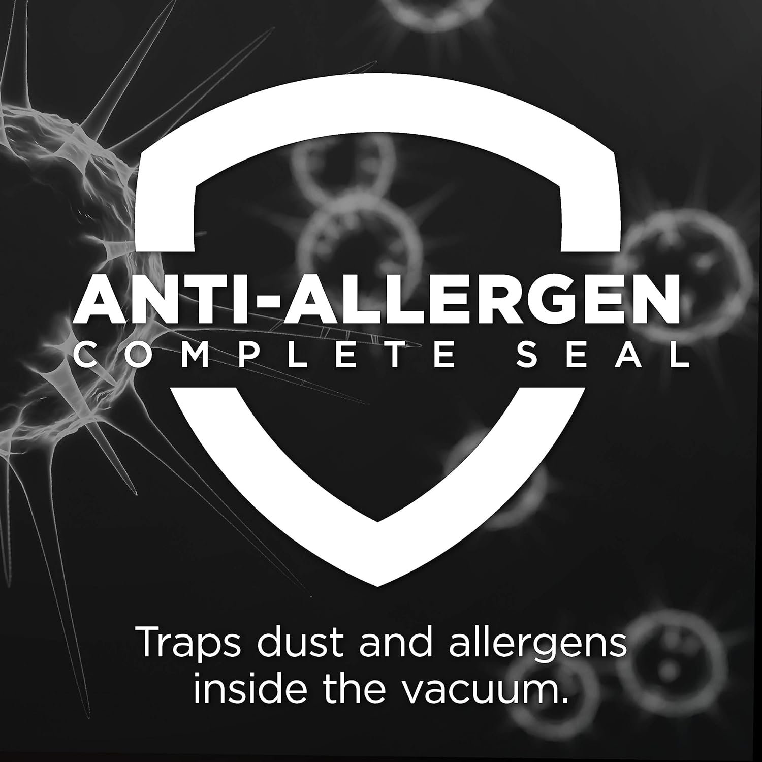 Anti-Allergen Complete Seal Technology and a HEPA filter trap dust and allergens inside the vacuum.