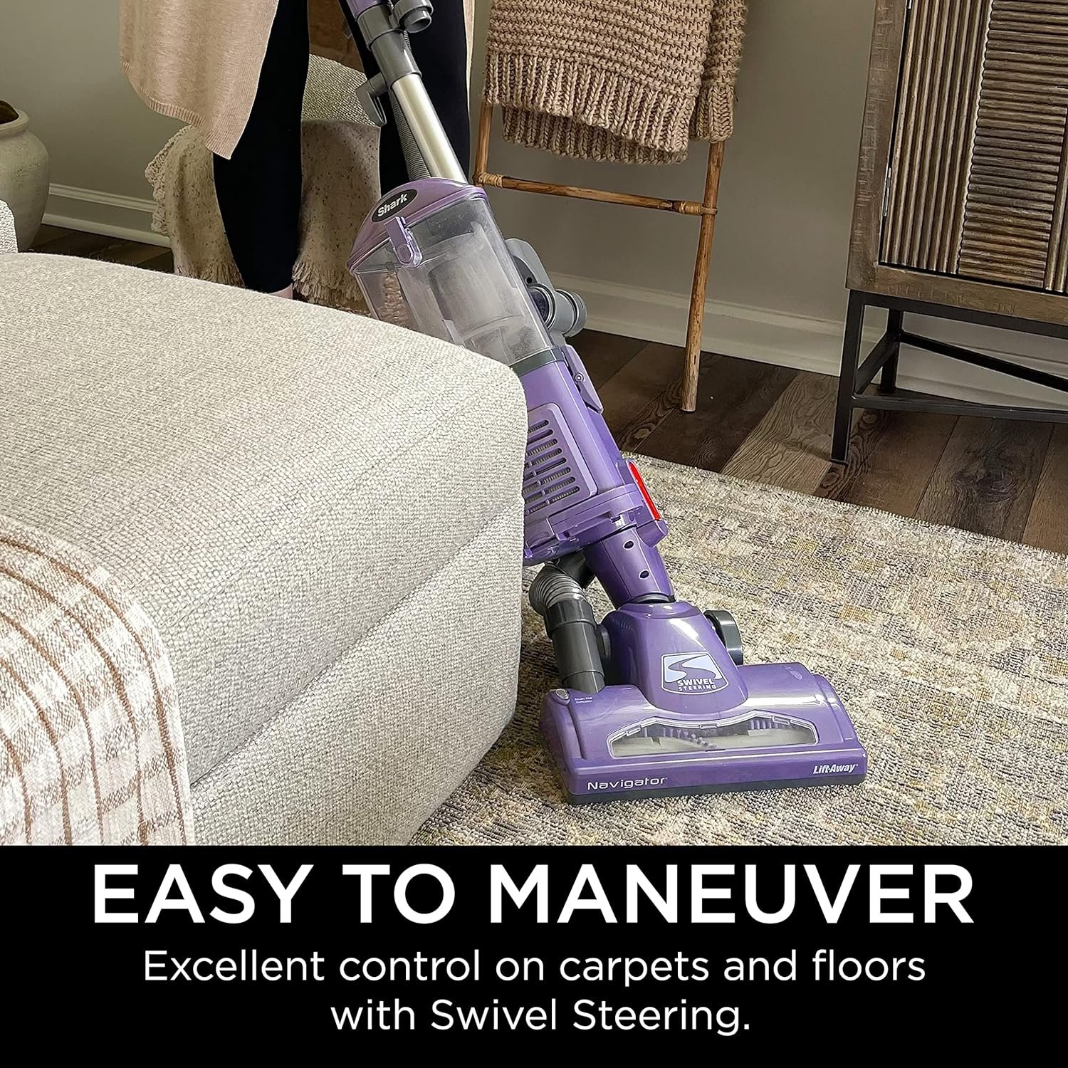 This Certified Refurbished Shark Navigator Lift-Away Vacuum is lightweight convenience ideal for quickly cleaning stairs, upholstery or accessing small, hard to reach areas around your home and car. Powerful attachments quickly and easily lift pet hair and other ground-in dirt from carpeted stairs, upholstery and other surfaces. The advanced cyclonic technology separates fine dirt from the air, preventing dirt from clogging the filters and keeping suction power strong over time. From the first use to the last room, you never lose cleaning power. Shark’s Anti-Allergen Complete Seal Technology, combined with superior HEPA filtration, captures and holds over 99. 9% of dust and allergens inside the vacuum, not back into the air you breathe.