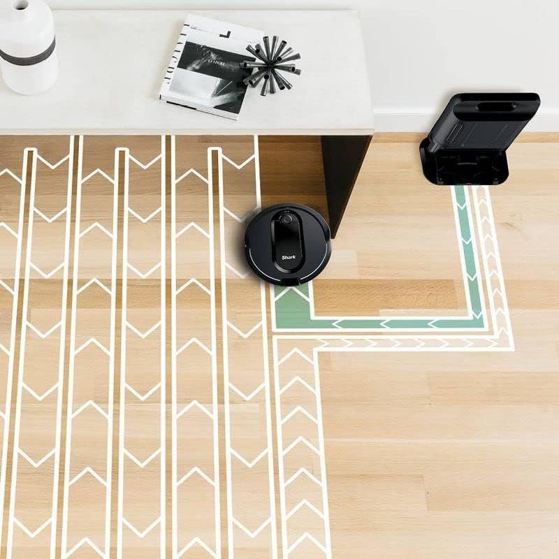 The Shark EZ robot vacuum combines convenience with intelligence and performance. After each cleaning session, your robot vacuum automatically empties the dust bin into the bagless base, which holds dirt and debris from up to 45 cleaning sessions. The Shark EZ Robot cleans row by row to assure total floor cleaning and with recharge and resume, it will return to the base, empty