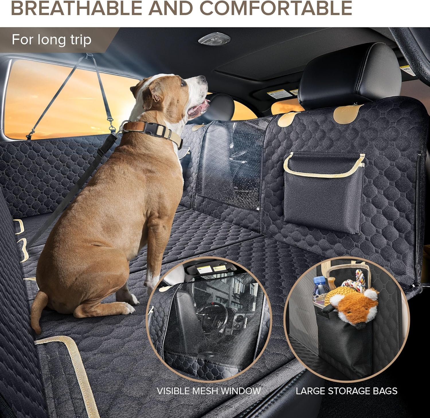 9-POINT SAFETY ASSURANCE ON THE MOVE – Equipped with six adjustable straps, two safety anchors, and a dog car seat belt harness, our truck dog seat cover back seat ensures protection from all angles, keeping dogs securely in place. The visual mesh design provides optimal airflow, dog and person can see each other throughout the journey. Convenient storage pockets keep travel essentials organized, making it the ideal car accessories and dog accessories on the move