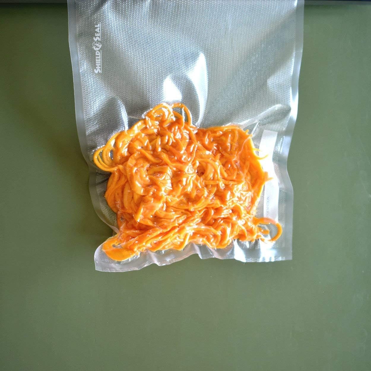 Shield N Seal’s 3.5 mil All Clear Vacuum Seal Rolls are designed for easy, affordable food storage. These bags are BPA free, food grade clear heat seal rolls. Studies have shown that properly vacuum sealed food can stay fresh up to 5x longer, sometimes 10x longer. BPA free means that you can cook with confidence. You can sous vide your favorite recipes, boil in bag at any temperature knowing that our materials are food safe. They will not affect the flavor of the food, nor will they leach toxins that will harm your family. Your meal will retain its taste, texture, aroma, and nutritional value. Clear plastic vacuum seal bags are perfect for any type of food stuff; meat, chicken, fish, produce, and even coffee, tea, and herbs are kept amazingly fresh when sealed in these bags. We’ve made our new bags stronger and thicker than ever before, making sure that they lock out moisture and air. They reduce freezer burn better than any other bag we’ve tested. And while it locks in flavor, it will also lock in odor. You don’t have to worry about strong smells emanating from a Shield N Seal bag. Pungent food or garden odors are locked in tight, for good. The clear plastic is perfect for showcasing your recipes, and has white areas that make it easy to label date and type of meat. You’ll be able to easily find what you’re looking for as you pull it out of deep storage. Don’t forget to reuse your rolls! Just trim off the rough edge, and reseal. It’s simple to save money by not only saving money on food, but also on the bags themselves. Our bags feature a honeycomb channel system that makes them compatible with most sealers that are 11″ or wider. We recommend using our Sealers for the strongest, thickest seal, but our vacuum seal rolls can be used with a variety of systems.