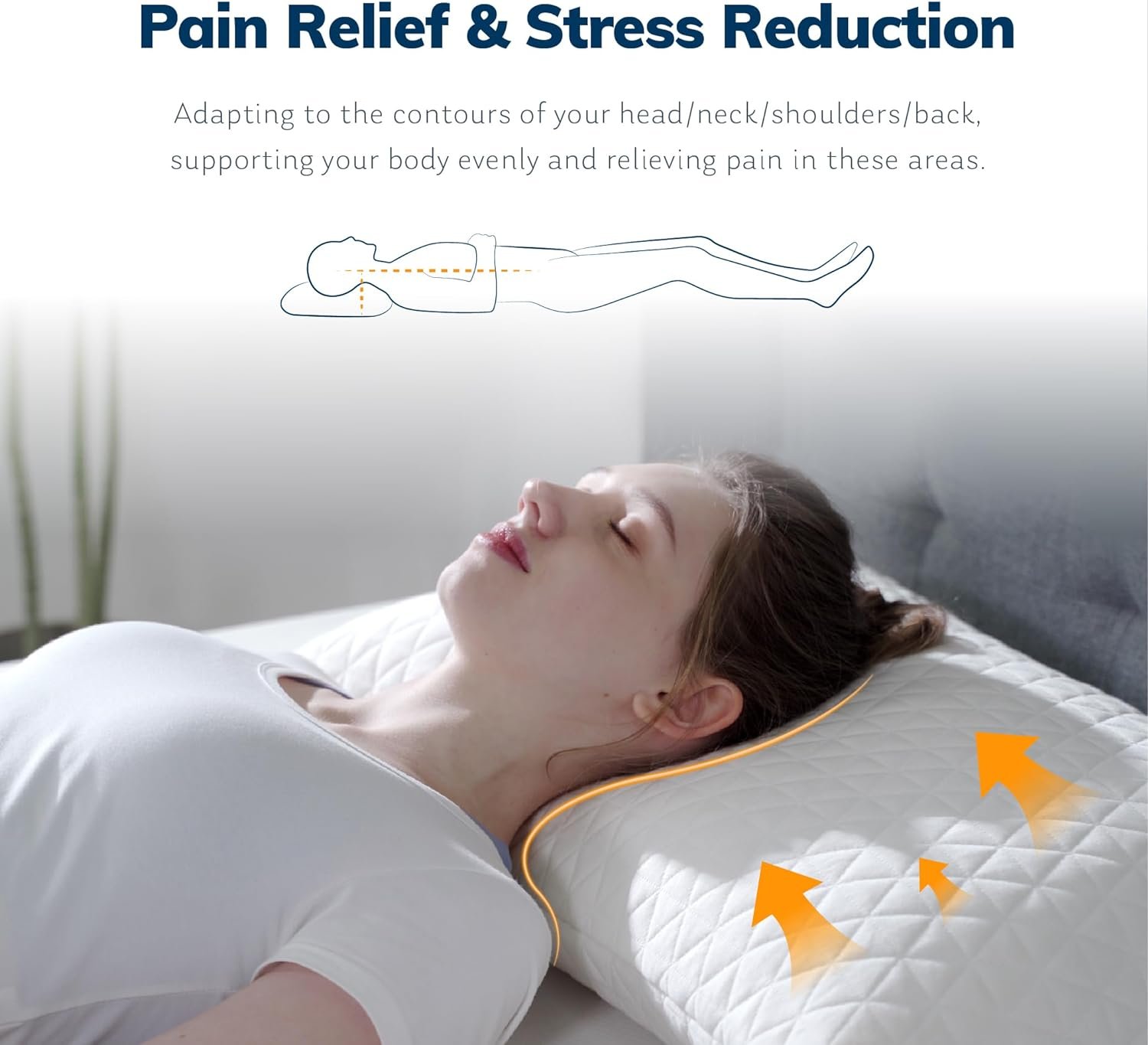 PAIN RELIEF & STRESS REDUCTION: This memory foam pillow is medium firm and supportive. The sleep pillow conforms to the contours of your head/shoulder/back and evenly supports you to relieve head/shoulder/back pain, in addition to relieving a wide range of sleep problems.